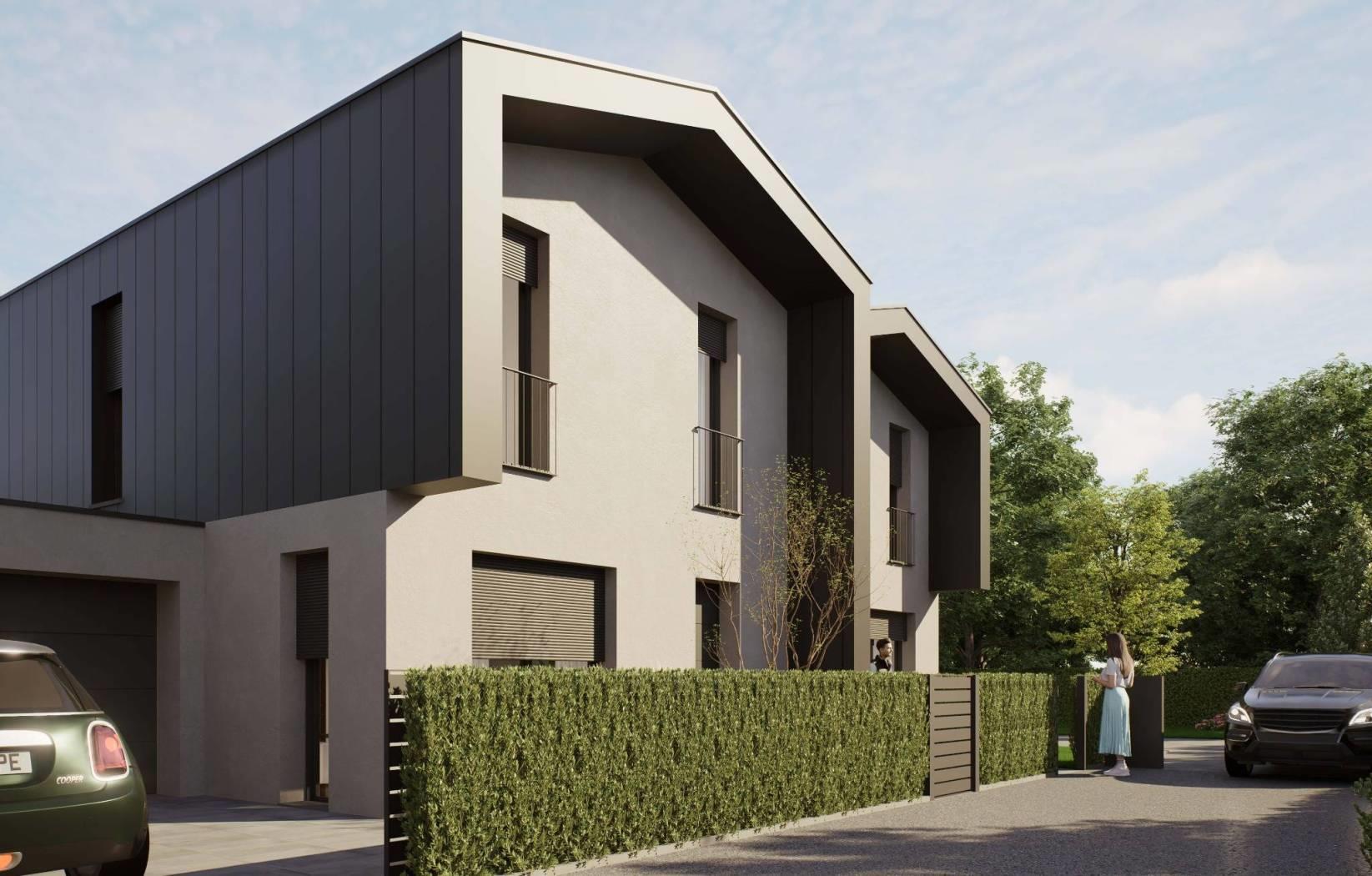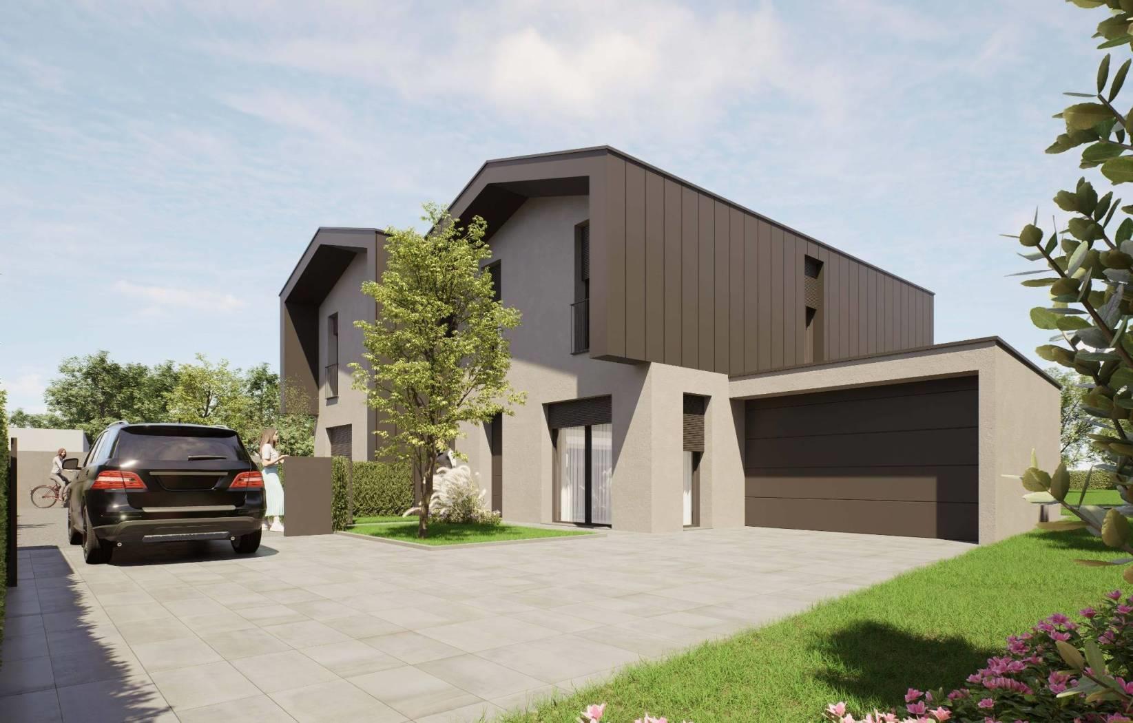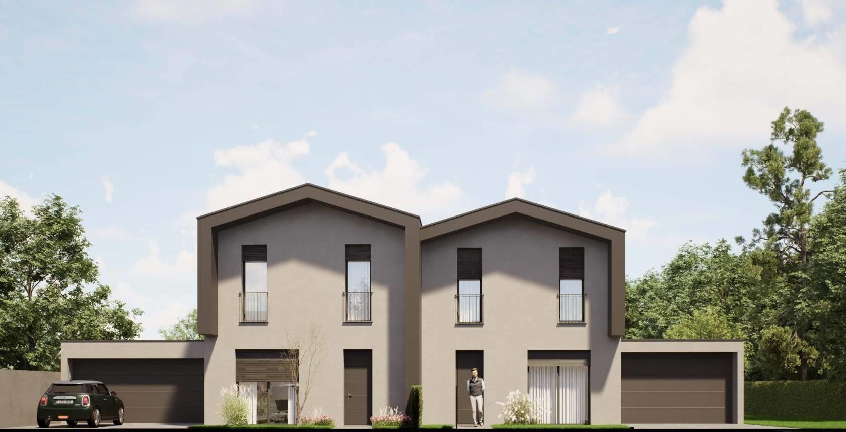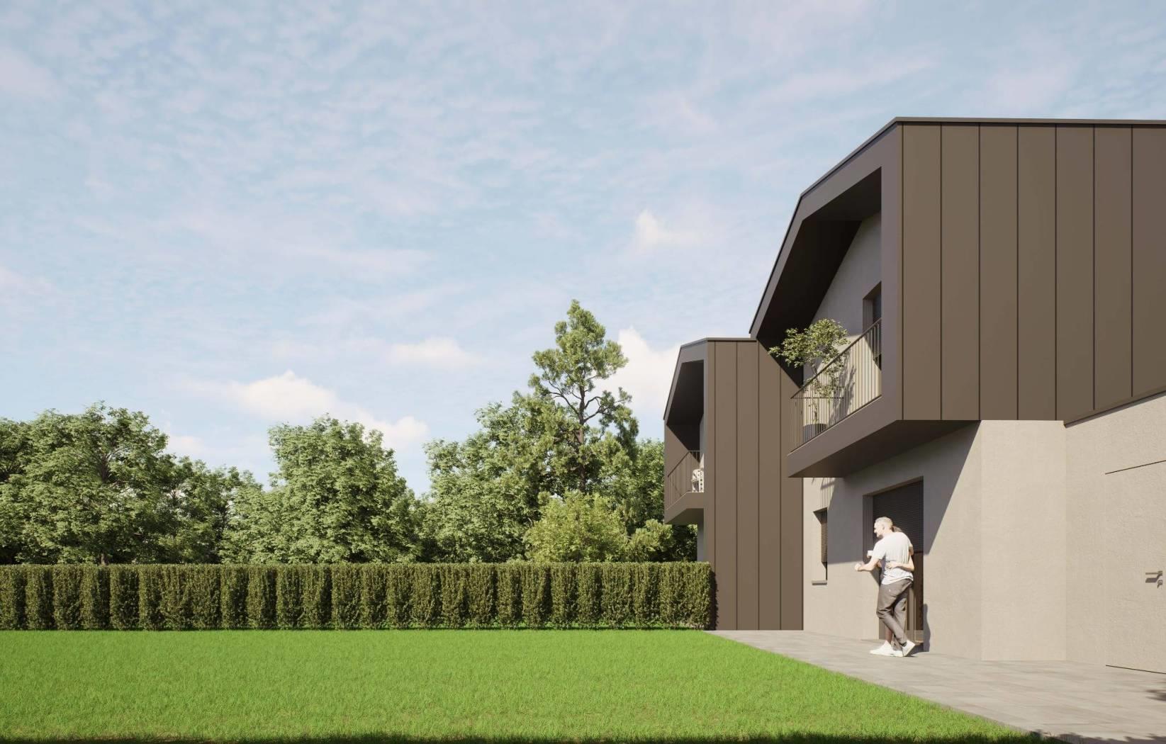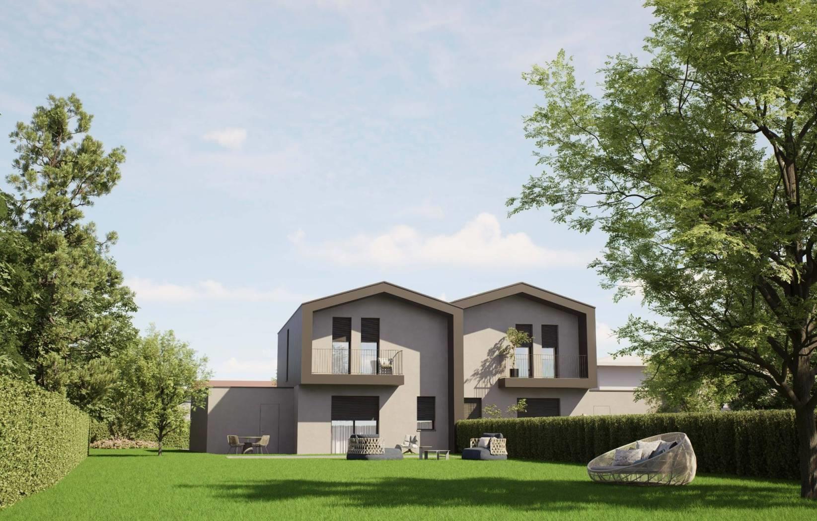 porzione di villa bifamiliare di nuova realizzazione con ingresso pedonale e carraio completamente indipendente, composta da: p.terra ingresso, ampio soggiorno, cucina abitabile, disimpegno e bagno; giardino privato di 680,77mq e box di 22,86mq sempre al piano terra;