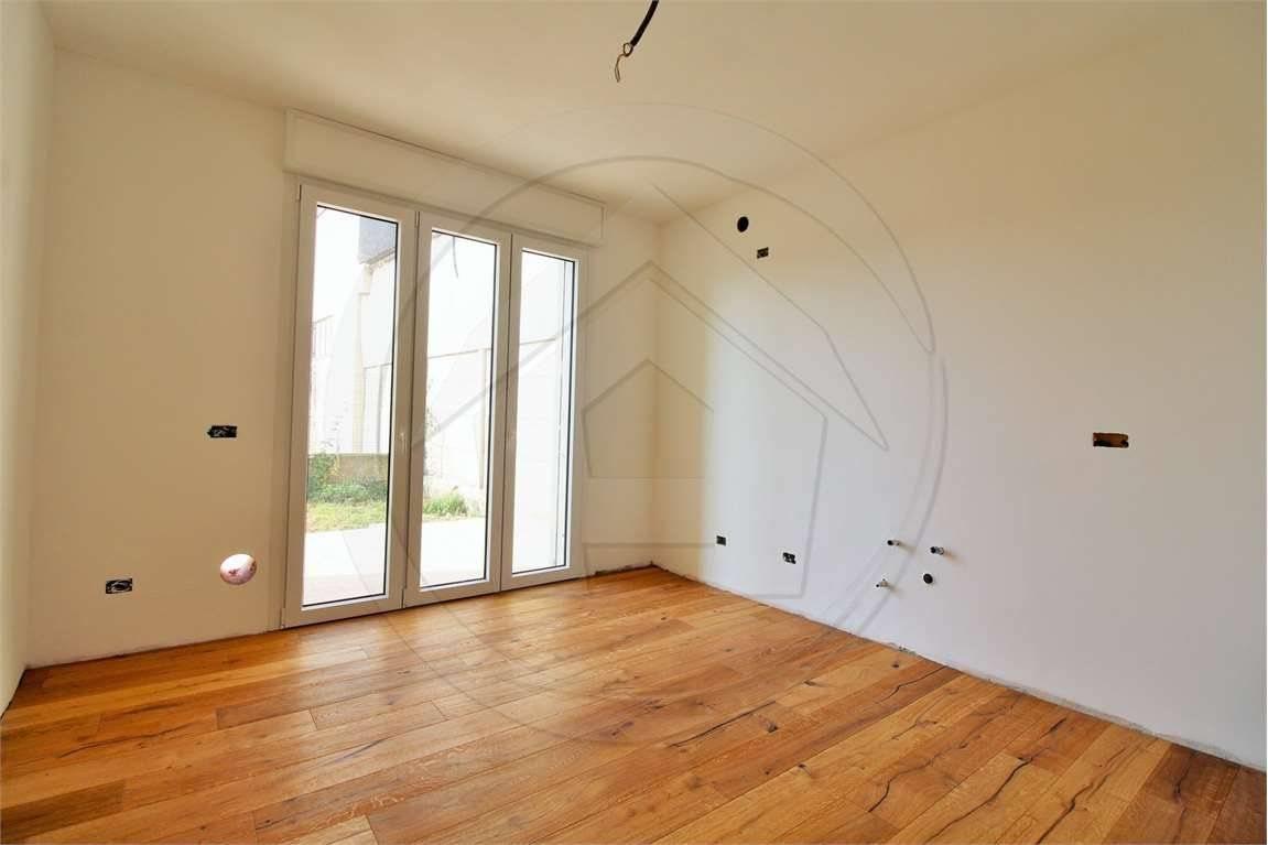 Al piano terra, un ampio e luminoso soggiorno open space accoglie con atmosfere calde e sofisticate, affacciandosi su un giardino privato finemente curato, ideale per momenti di relax e convivialità. La cucina moderna e spaziosa, il bagno di servizio e il box doppio completano il livello con funzionalità e stile.
