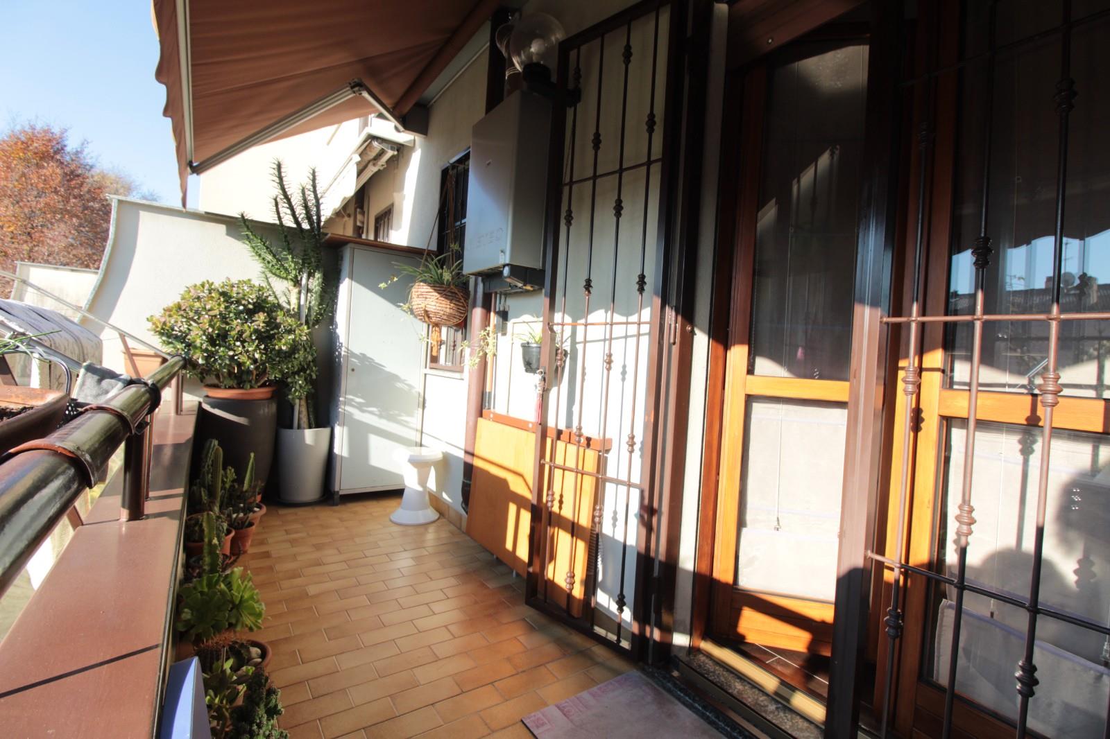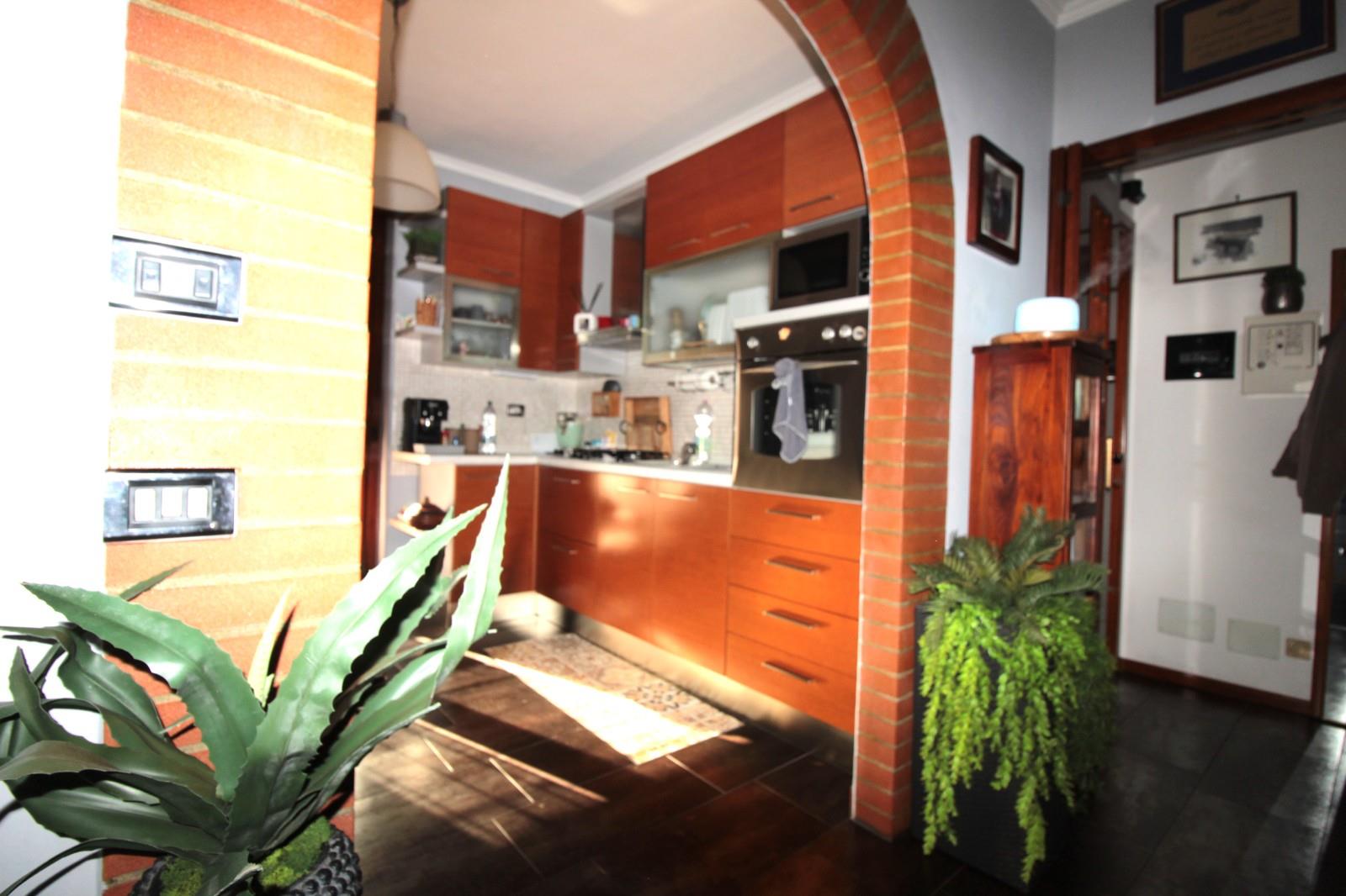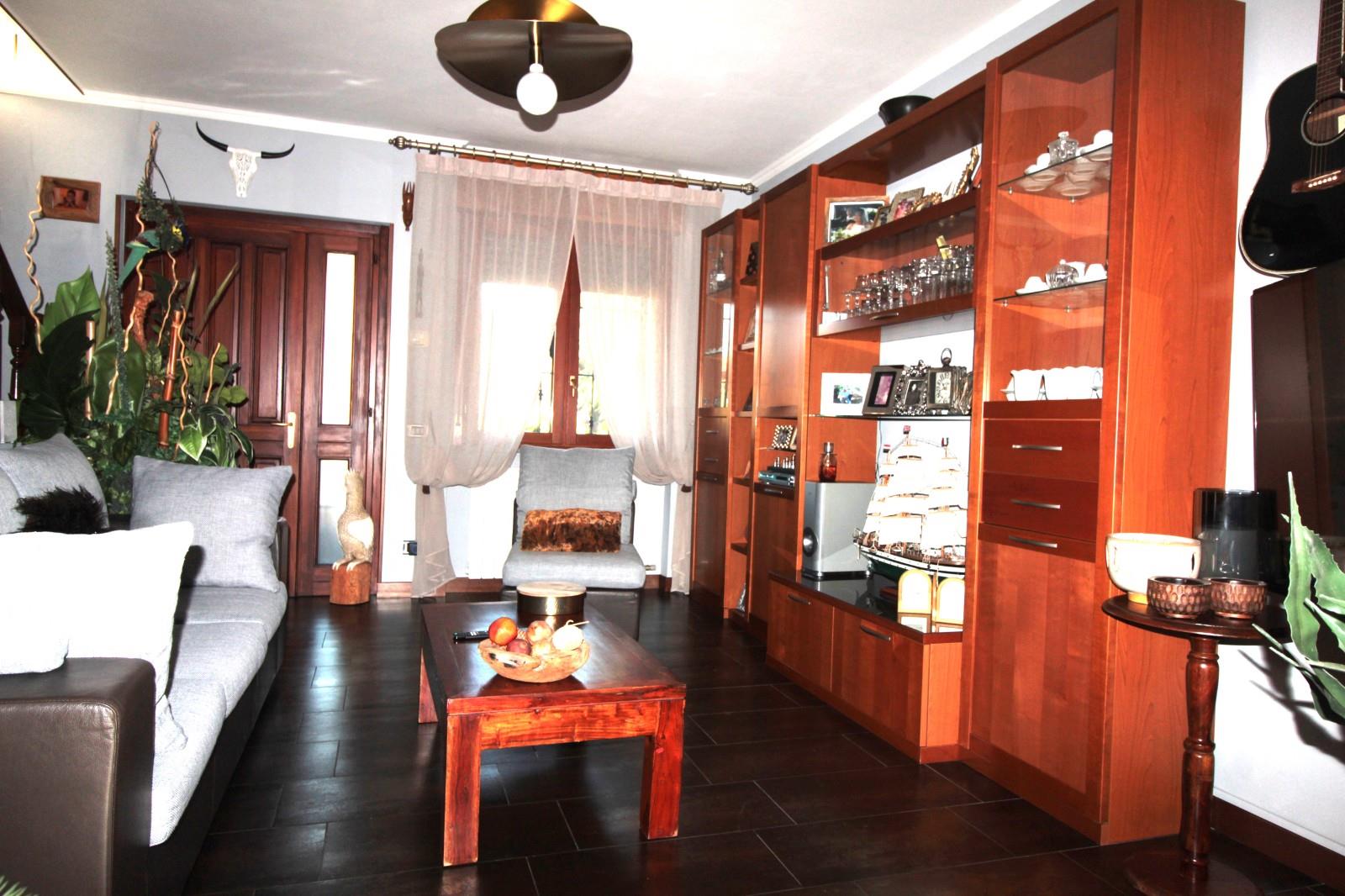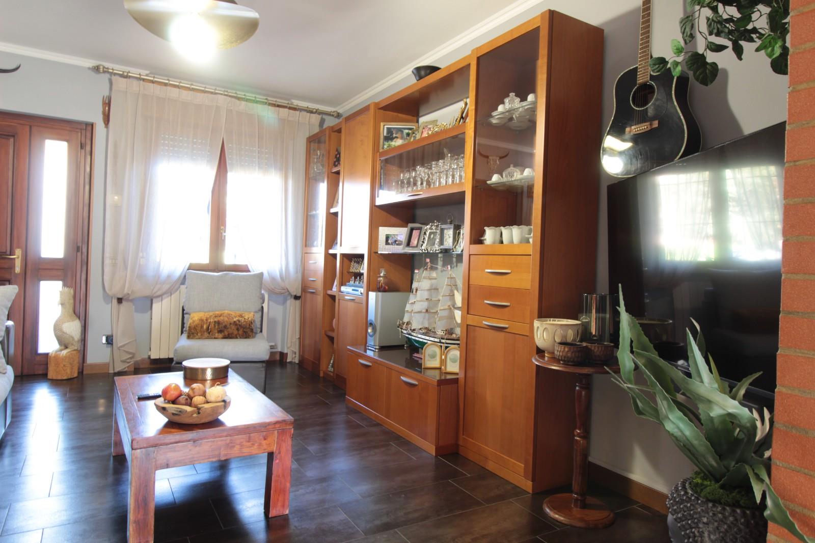In zona riservata e di sole ville, su strada a fondo cieco, villa a schiera centrale con ingresso pedonale diretto al piano rialzato. Il portoncino blindato introduce nella luminosa zona giorno, composta da soggiorno, cucina abitabile e primo bagno di servizio. La cucina dispone di tapparella elettrica per maggiore comfort.