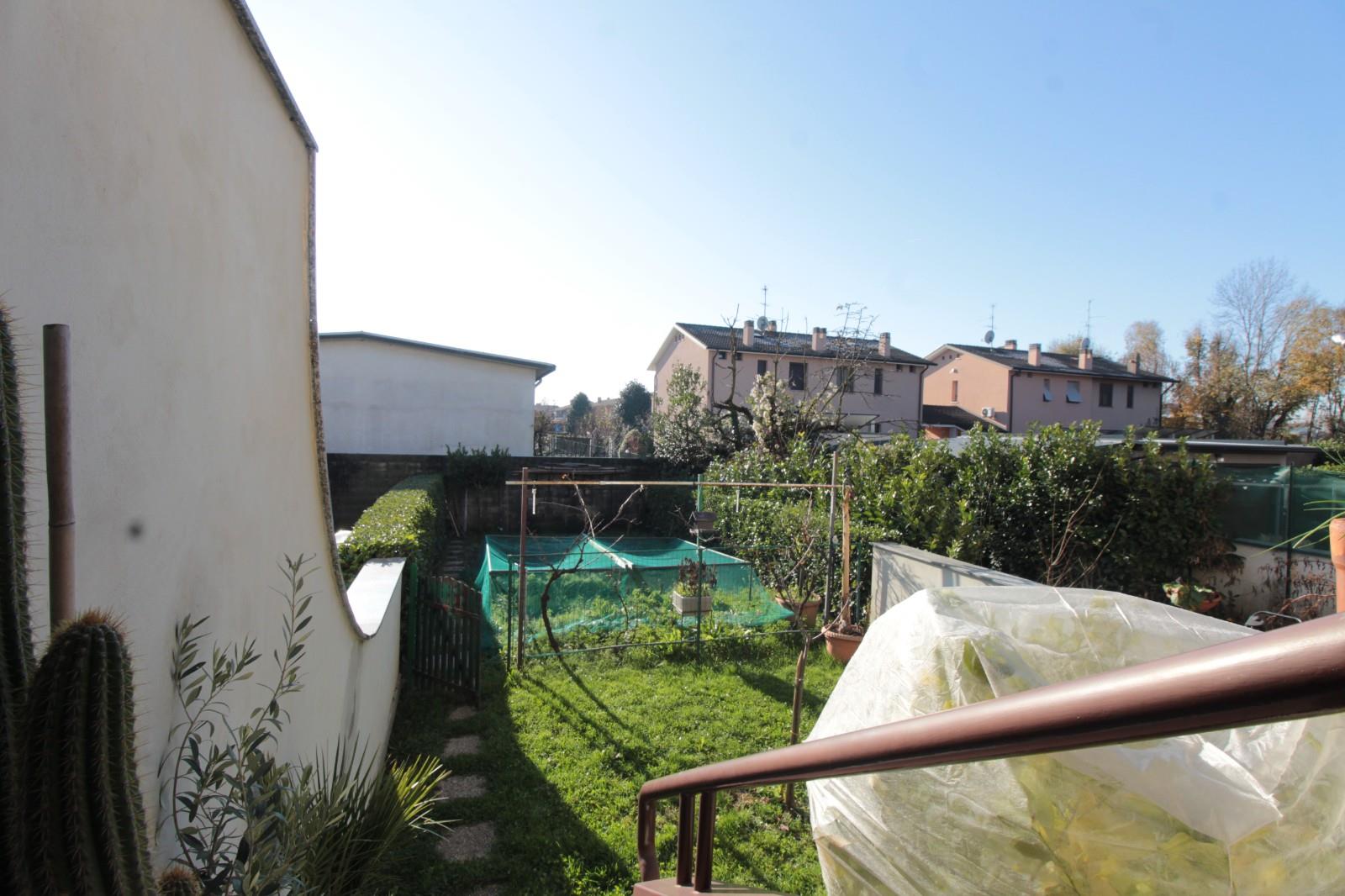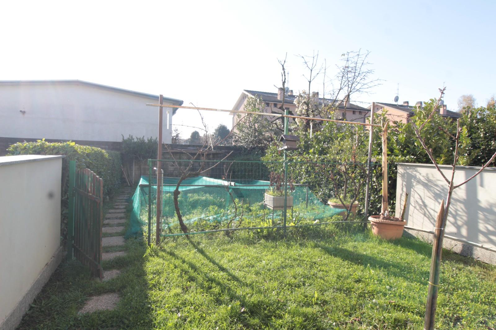 La proprietà dispone inoltre di uno spazio frontale di circa 65 mq con autorimessa e di un giardino sul retro di circa 76 mq, accessibile dalla cucina.