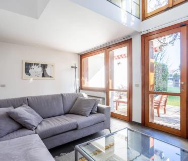 Macherio, Via Pietro Nenni: proponiamo in vendita in esclusiva, una porzione di villa bifamigliare costruita nel 2006 e rifinita con materiali di pregio. Ubicata in una zona verde e tranquilla è così disposta: al piano terra di 78 mq, ingresso con camino, zona pranzo, soggiorno, bagno finestrato e cucina abitabile (il tutto rivestito in marmo di Carrara). Dalla cucina e dal soggiorno si accede al giardino di circa 300 mq che ha anche un’area esterna porticata con zona barbecue. Al piano primo di 73 mq, che si accede tramite una scala rivestita completamente in marmo, troviamo un’ampia camera matrimoniale con cabina armadio, e bagno en suite finestrato, una seconda camera e un secondo bagno con vasca idromassaggio e doccia. Il pavimento della zona notte è rivestito in parquet. Completano la proprietà la taverna con locale lavanderia, e il box doppio in larghezza con annessa un’area dove poter parcheggiare altre due auto. Riscaldamento autonomo a pavimento. Impianto di antifurto.