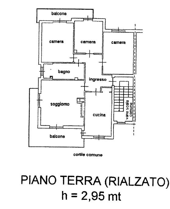 Piano rialzato: ampio quadrilocale di circa 127 mq con soggiorno e terrazzino, cucina abitabile, tre camere e bagno