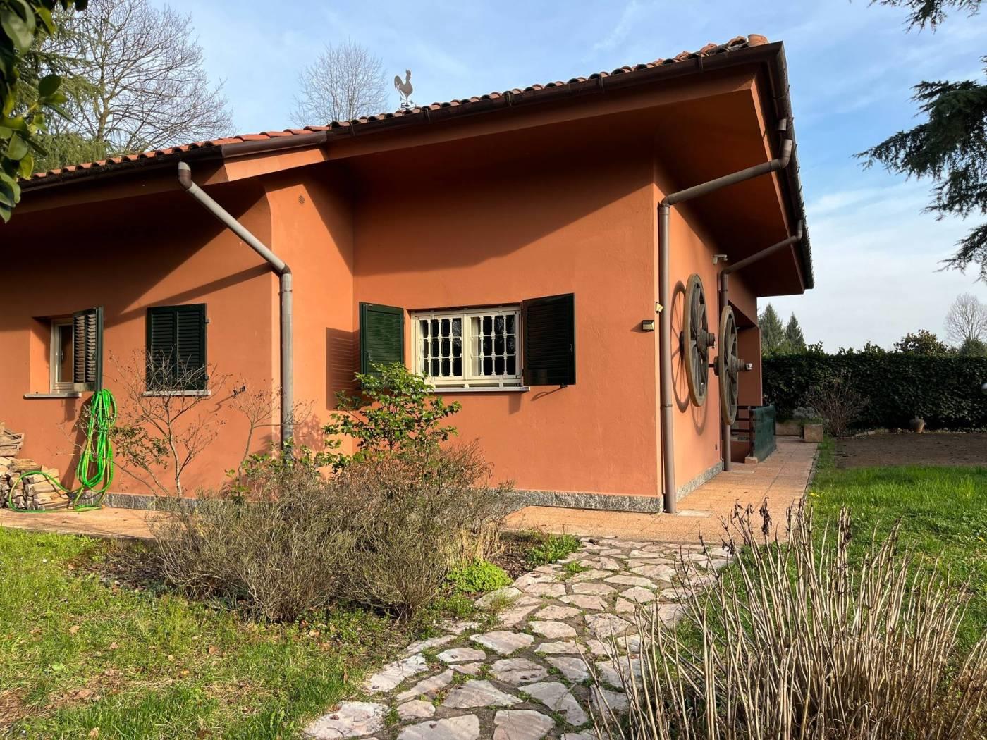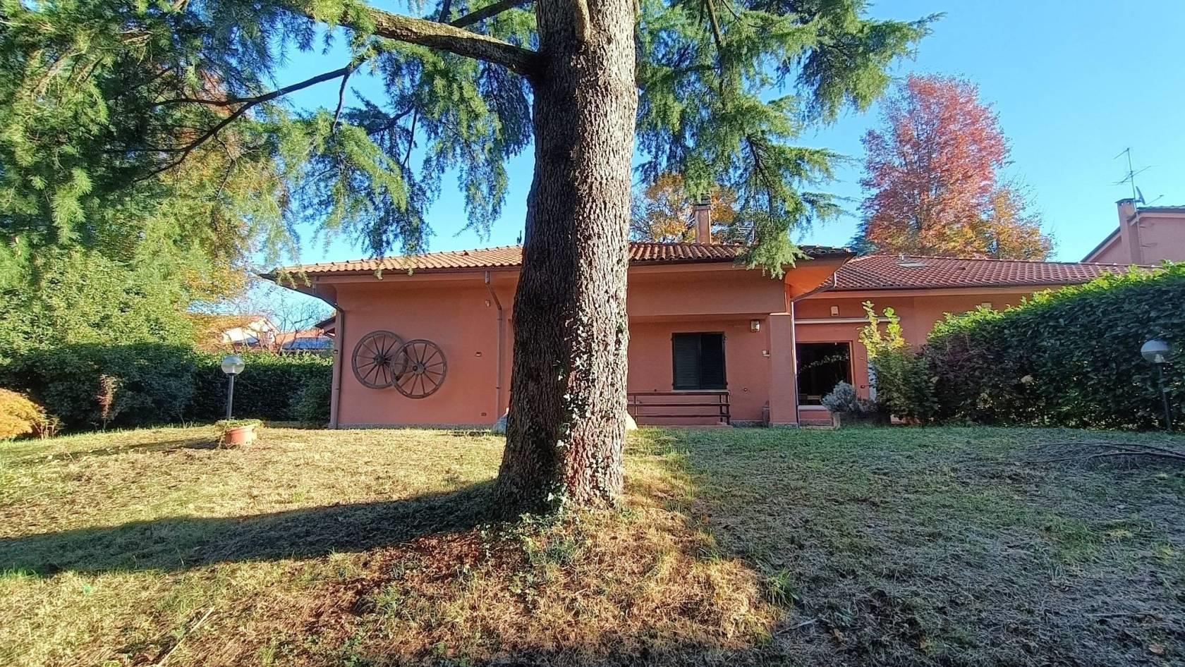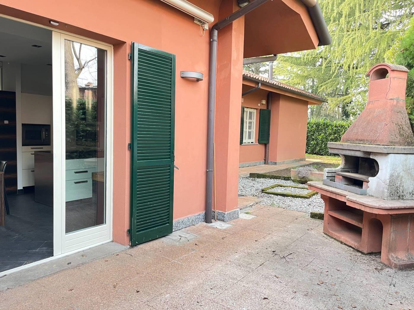 La soluzione abitativa è libera e quindi subito disponibile ed è stata oggetto di una ristrutturazione dei servizi, pavimenti e porte pochi anni or sono e nello specifico trattasi di un'ampia porzione di villa bifamiliare (paragonabile per dimensioni ad una villa singola) libera sui tre lati per una superficie totale di circa mq 474 totali, oltre ad un'autorimessa tripla di 68 mq ed un giardino privato di 550 mq circa che risulta così composta: Piano terra di circa 170 mq, composto da: Ingresso, luminoso ampio salone doppio con tre porte finestre comunicanti con il giardino esterno, cucina abitabile a vista ma dotata di ampia porta scorrevole da utilizzare qualora si volessero tenere separati i due ambienti, disimpegno notte con tre camere da letto di cui le due camere per ragazzi per ampiezza considerabili matrimoniali e la camera padronale organizzata come "Panic Room" e quindi oltre ad essere dotata di un proprio servizio finestrato dotata di una porta blindata d'accesso e grate di sicurezza nella porta finestra uscente sul giardino, infine un secondo servizio con doccia anch'esso finestrato serve le altre due stanze da letto. Una comoda scala interna ci conduce al piano mansarda agibile di 170 mq ca, composto da: una zona salone/locale hobby con una propria stanza ed un servizio/lavanderia. Il Piano seminterrato di circa 134 mq è suddiviso in una zona taverna con cucina dotata di forno legna e forno pizza in muratura, un locale ulteriormente utilizzato come zona hobby multiuso, un locale lavanderia/stireria, una cantina vini, un locale centrale termica ed un vano autorimessa triplo di 68 mq ca. Incornicia questa villa sui tre lati un giardino di 553 mq circa ottimamente piantumato con zona pranzo con Barbecue in prossimità della cucina e propria scla d'accesso al piano taverna. Riscaldamento Autonomo. Classe Energetica 'E' IPE '210,18' KWh/m2a. Il presente immobile viene offerto ad € 470.000,00. NOTE: le metrature sono del tutto indicative non potranno essere utilizzate come parte integrante in un eventuale contratto di vendita o locazione della proprietà. www.dinamicalesmo.it info@dinamicalesmo.it 039/6888025 Lorenzo Zorzetto 331/6769010 lorenzo@dinamicalesmo.it