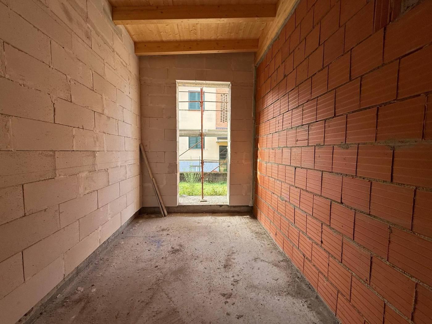 VILLA A – Sviluppa una metratura di mq 130 con una divisione interna che prevede un quattro locali più doppi servizi DISPOSTI SU UN UNICO LIVELLO abitativo. Le zona giorno sono esposte in direzione SUD caratteristica che garantisce luminosità per tutto l’arco della giornata. Il soggiorno raggiunge una superfice di mq 40 comunicante con il giardino di proprietà tramite il finestrone scorrevole. La cucina separata e abitabile è di generose dimensioni in grado di ospitare qualsiasi tipo di arredo. il disimpegno conduce alla zona notte composta da tre camere da letto, tutte sopra la media delle metrature e doppi servizi. Il box auto anch’esso molto grande arriva ad una metratura di mq 42 in grado di ospitare due autovetture una di fianco all’altra ed è dotato di comodo accesso diretto alla villa. Il giardino, luogo di relax privato all’aria aperta, circonda l’abitazione sui tre lati, una vera e propria oasi di relax all’aria aperta, in una zona dove il traffico veicolare è quasi assente. Di fronte al box è presente un’area di proprietà dove è possibile parcheggiare due auto visitatori. Il tetto costruito con scenografiche travi a vista in legno lamellare raggiunge un’altezza interna di 4 metri donando impatto scenografico ed estetico degli ambienti. Un cuore tecnologico, che grazie a materiali ad alte prestazioni energetiche e impianti di ultima generazione consentiranno il raggiungimento della classe energetica “A3“a salvaguardia dei consumi e nel rispetto dell’ambiente.