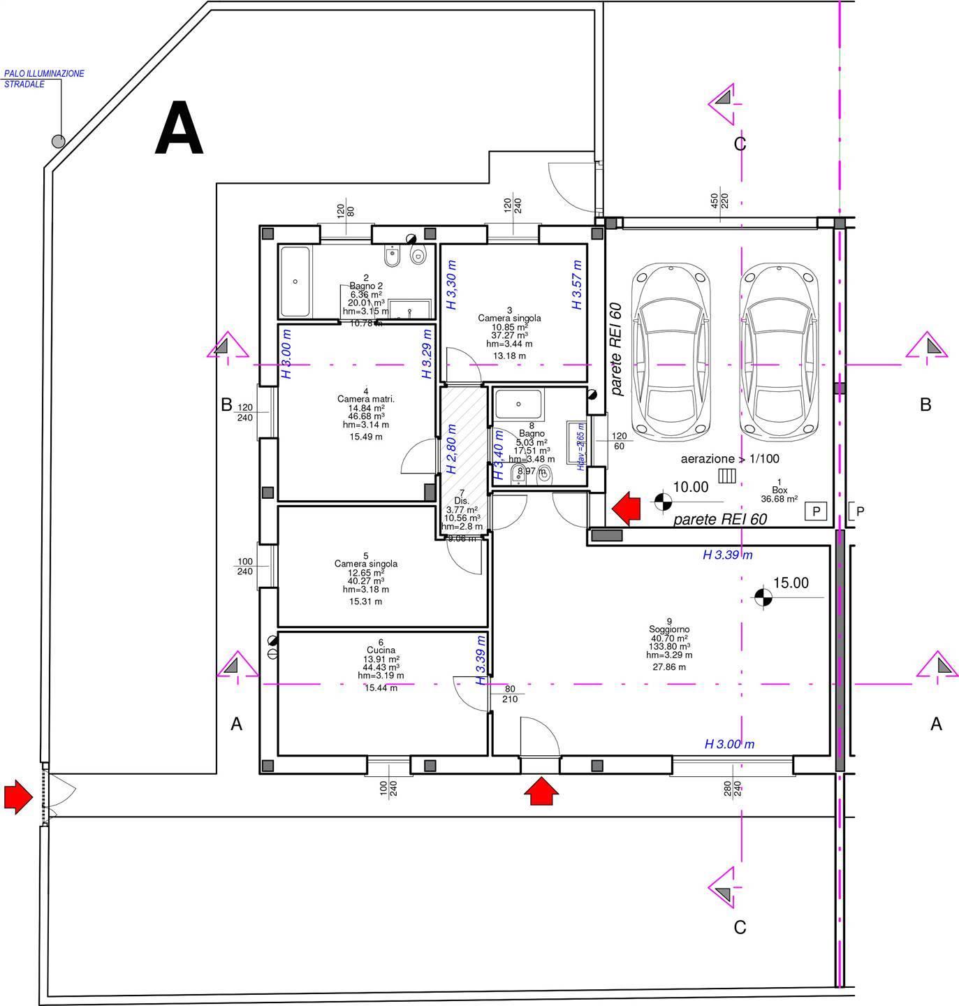 Gli ingressi carrai e pedonali indipendenti accompagnano alle abitazioni dove la disposizione interna prevederà la divisione in 4 locali più doppi servizi corredate dai grandi box auto doppi in larghezza, dotati di ingressi di servizio direttamente nelle ville. Le grandi zone giorno esposte in direzione SUD, affacciano grazie ai finestroni scorrevoli sui giardini di proprietà, mentre le zone notti e i locali accessori, dall’altra parte dell’abitazione, saranno esposti verso NORD.