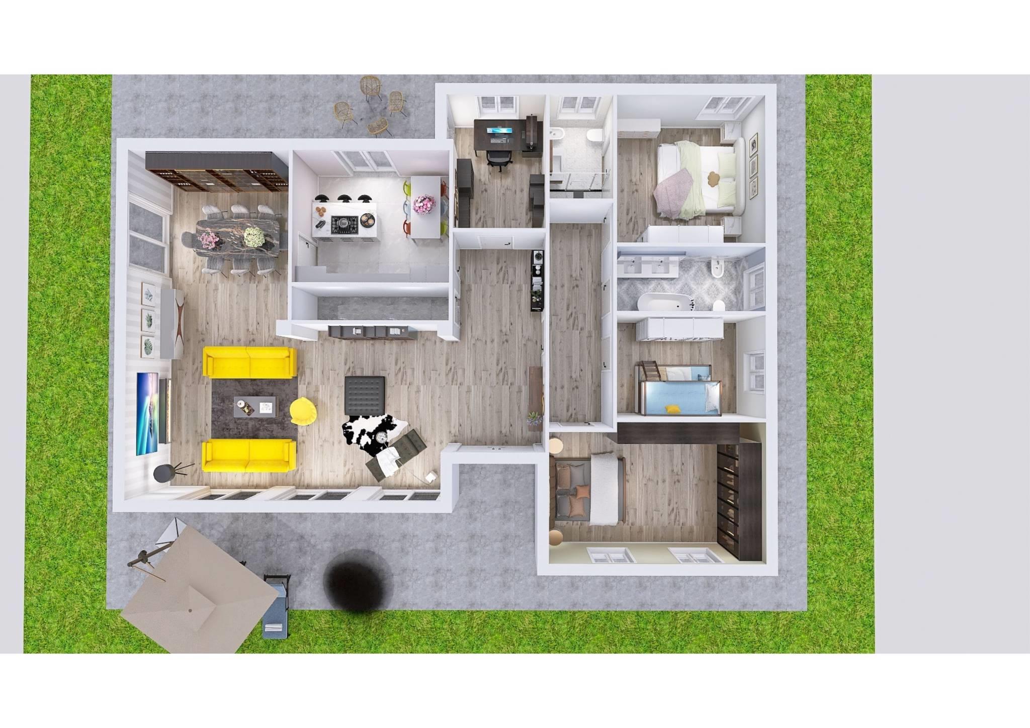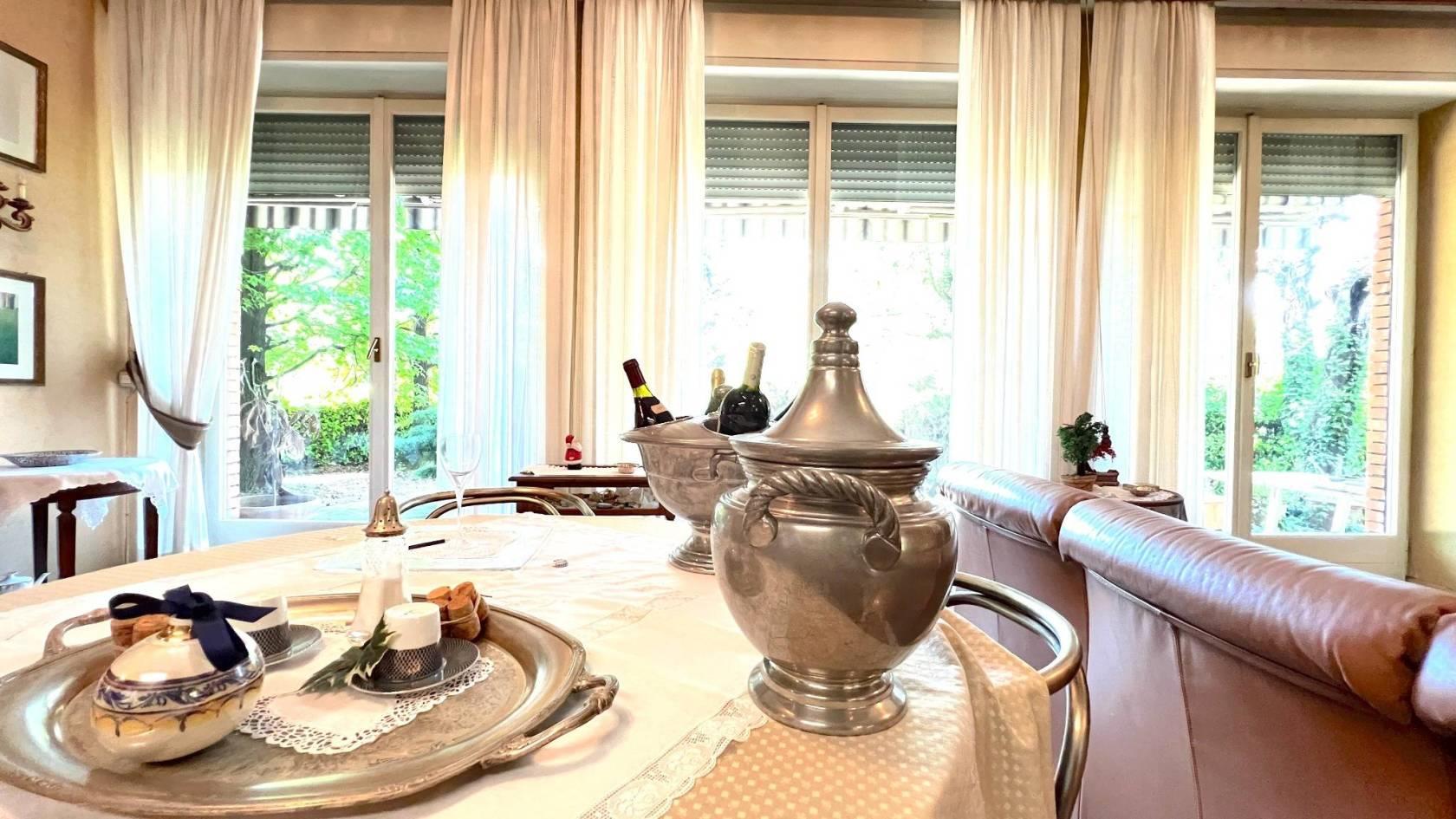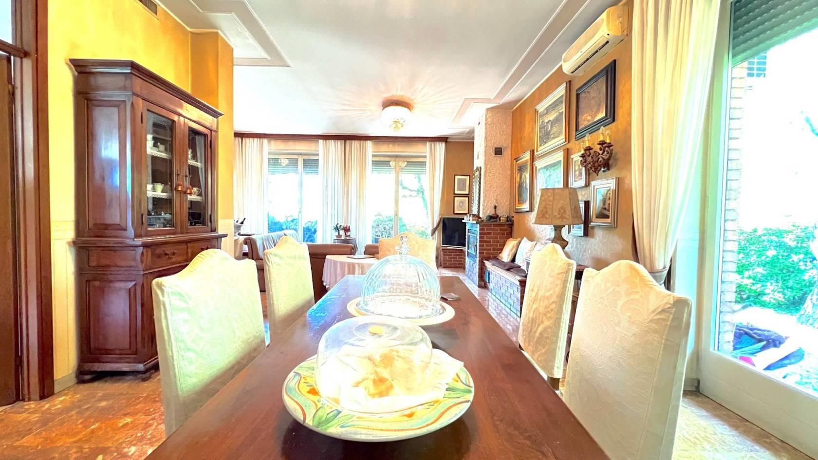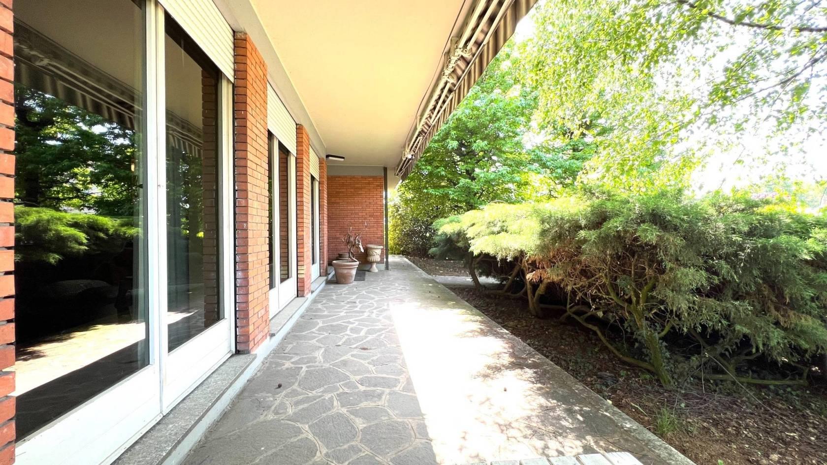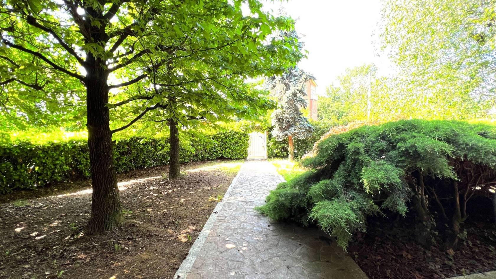 All’esterno un ampio giardino piantumato dove può essere realizzata un’area estiva con piscina privata.