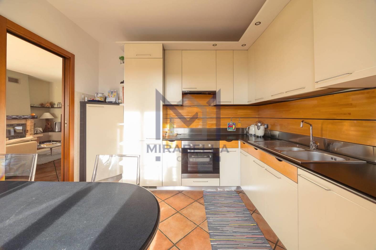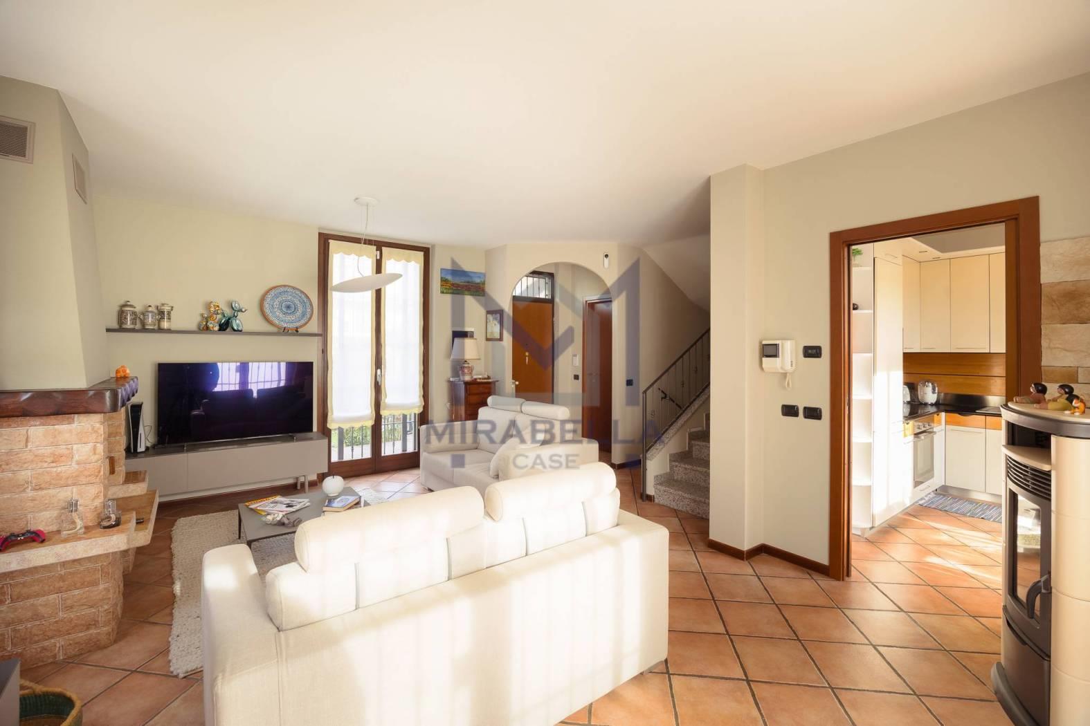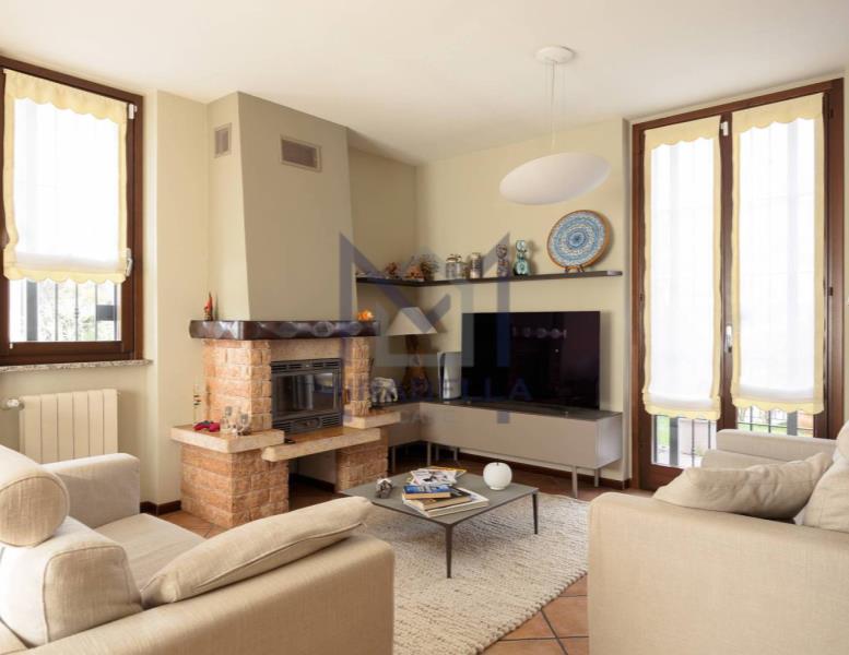 Si accede all'abitazione dal giardino di proprietà ed è così composta: l'ingresso si apre sull'accogliente zona giorno caratterizzata dalla presenza del camino e da ampie vetrate che le garantiscono una grande luminosità, cucina abitabile completa di portafinestra che dà accesso all’ ampio terrazzo sfruttabile per pranzi e cene con amici e parenti esposto a sud ovest ed un comodo bagno di servizio finestrato; attraverso la scala interna si accede al primo piano troviamo una camera singola, una camera doppia, la confortevole camera matrimoniale completa di portafinestra che dà accesso al balcone ed un ampio bagno finestrato completo di vasca.