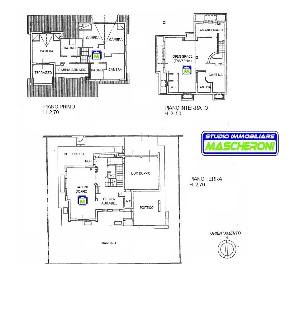 Piano Seminterrato: Ampio locale open space (taverna) con camino, locale lavanderia, centrale termica, bagno e cantina.