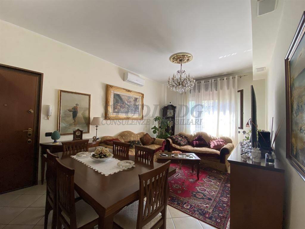 ingresso su luminoso soggiorno, cucina abitabile con accesso diretto a un ampio terrazzino loggiato, due spaziose camere da letto e bagno finestrato dotato di box doccia.