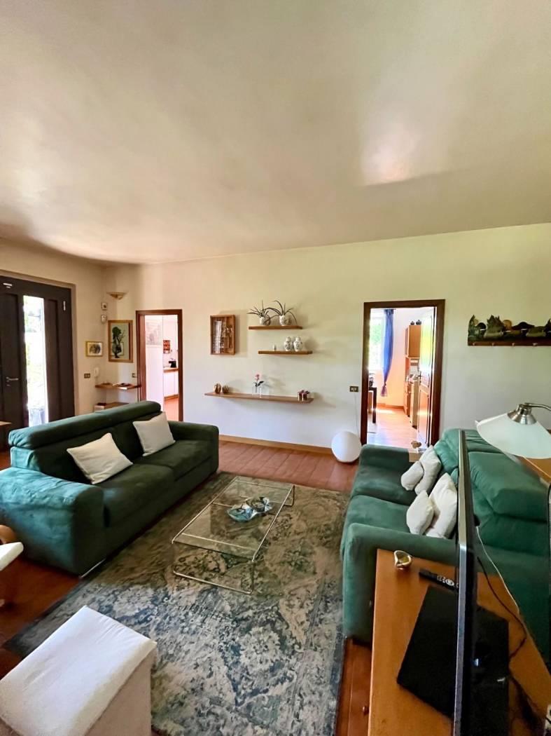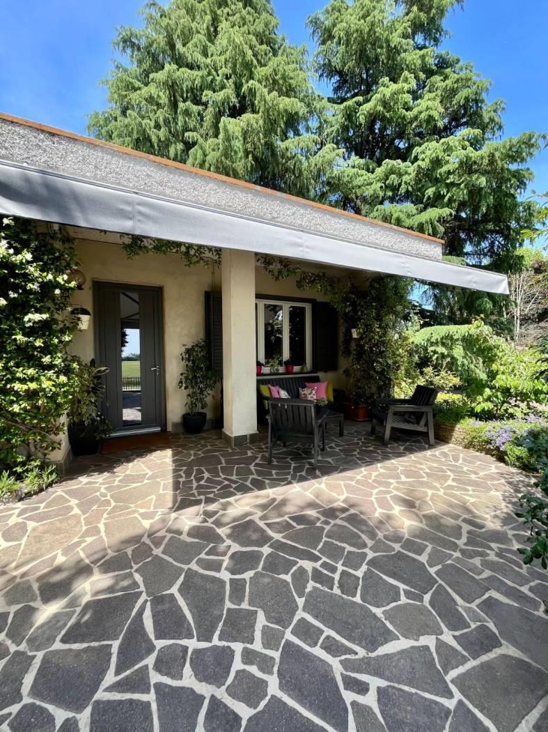 Proponiamo splendida villa, tutta su un unico livello di circa 183 mq. Casa grande ma gestibile, perfetta per chi cerca spazi confortevoli senza rinunciare alla praticità. Ingresso su ampia zona giorno, con un camino che crea un’atmosfera calda e invitante, la cucina abitabile si apre su una veranda ideale per pranzi all’aperto . La proprietà comprende tre camere da letto spaziose e servizi. Una comoda scala in legno conduce al piano seminterrato dove troviamo, taverna, locale lavanderia ed accesso diretto al box auto che può accogliere due vetture. Nel 2023 sono stati fatti importanti interventi di modernizzazione: è stato installato un sistema fotovoltaico da 3 kw ed una pompa di calore per garantire efficienza energetica e risparmio, oltre a nuovi serramenti interni ed esterni per un migliorarne l'isolamento. La villa dispone anche di una colonnina di ricarica per auto elettriche, una caldaia ibrida e tende da sole elettriche per godersi al meglio gli spazi esterni. La proprietà è circondata da un parco di 2000 mq, piantumato e curato, che offre un’atmosfera di tranquillità e una bella vista sulla natura circostante. È davvero una soluzione ideale per chi desidera vivere in una casa funzionale ed immersa nel verde!