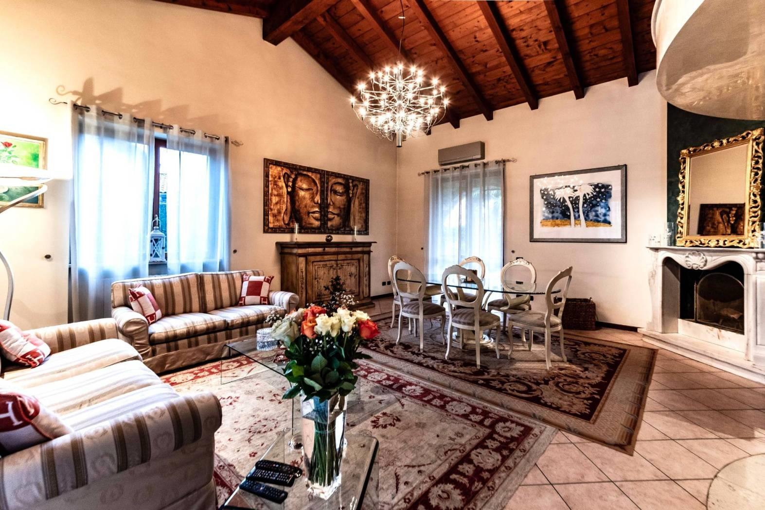 In una tranquilla zona residenziale di Verderio, composta esclusivamente da ville, proponiamo in vendita una prestigiosa villa unifamiliare, circondata da circa 400 mq di giardino privato e arricchita da comodi porticati coperti.