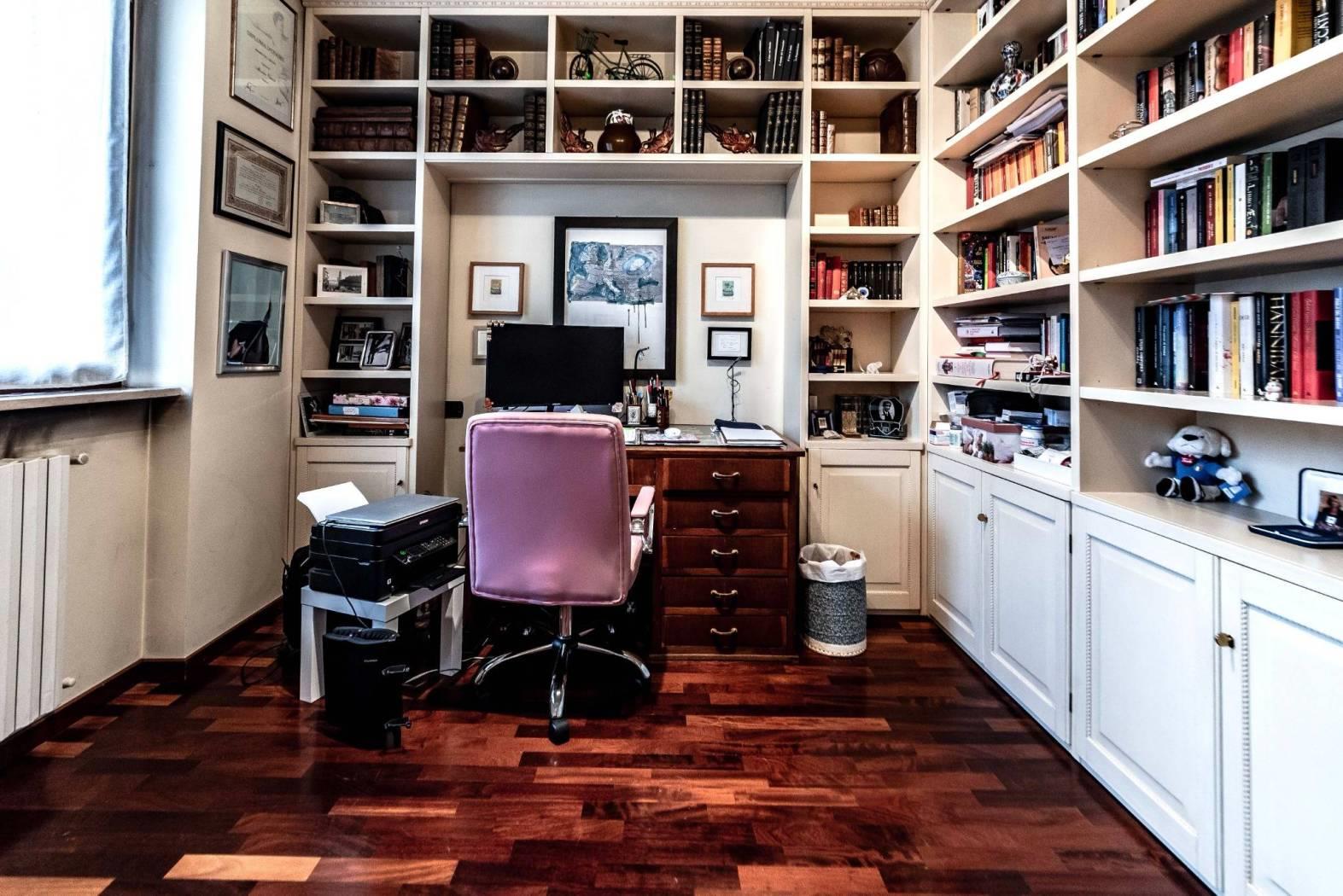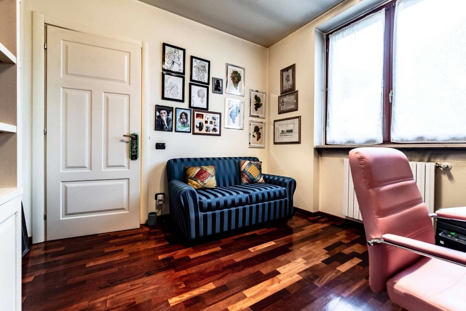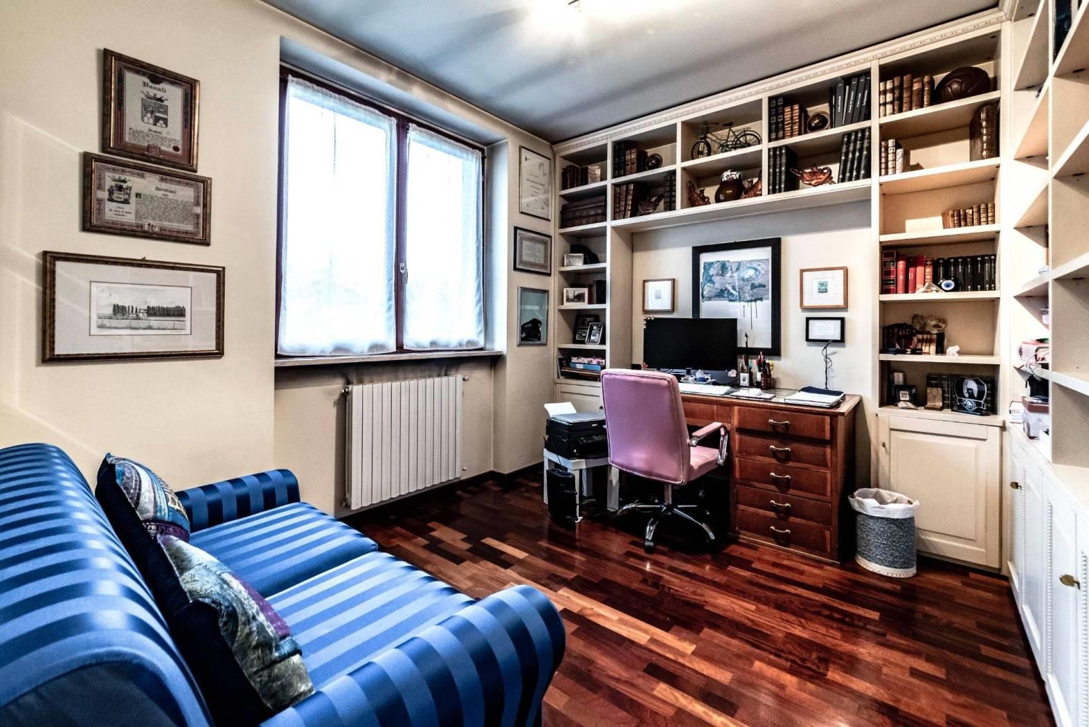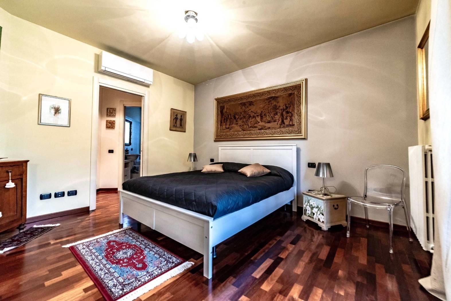Il piano ospita inoltre una spaziosa camera matrimoniale con cabina armadio e bagno dedicato, creando una vera e propria area padronale indipendente.