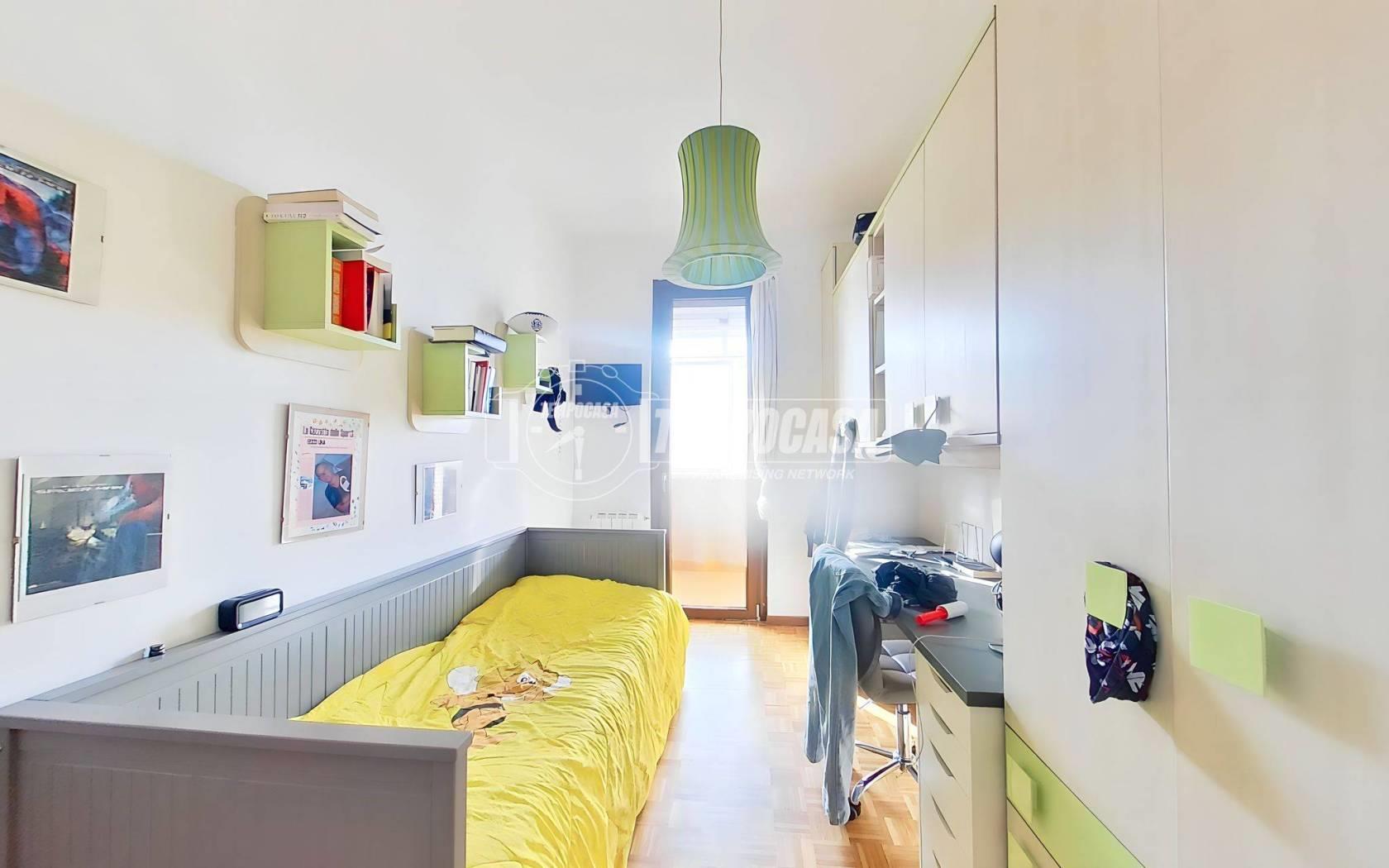 Proseguendo al piano superiore si accede alla zona notte, composta da tre camere da letto, tutte con affaccio sul balcone, che garantisce luce naturale e un gradevole sfogo esterno. La camera matrimoniale dispone inoltre di un bagno privato, un comfort prezioso per la vita quotidiana. Nello stesso piano è presente un secondo bagno, dotato di box doccia e finiture funzionali.