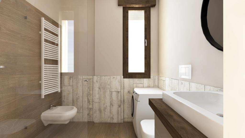 Bagni: Due bagni eleganti, uno con vasca e uno con doccia, entrambi arredati con materiali di alta qualità.