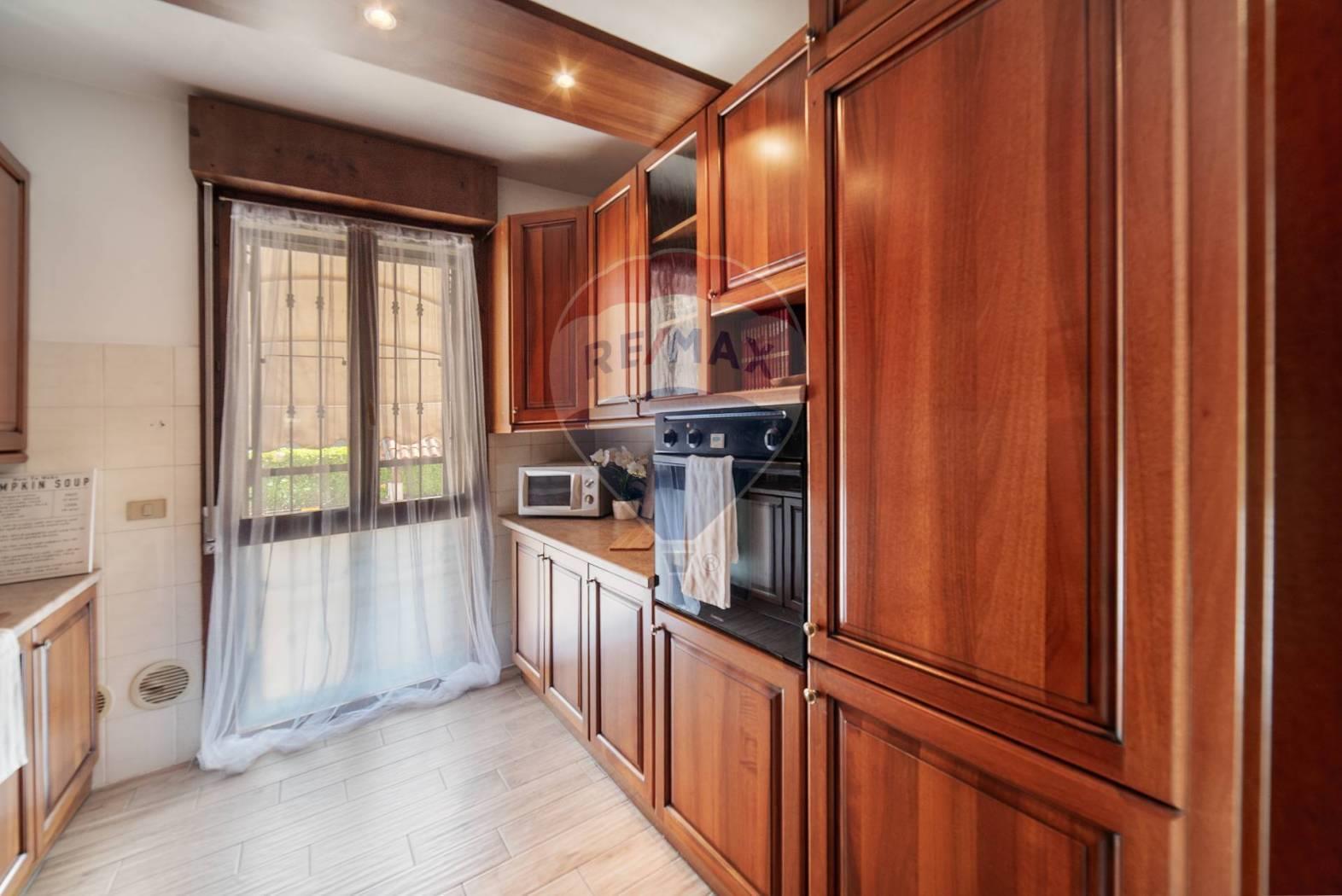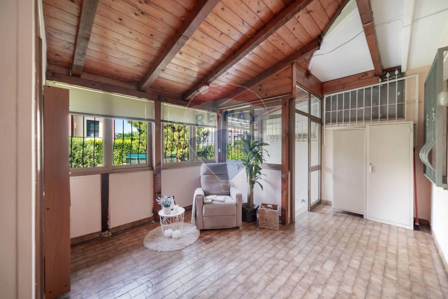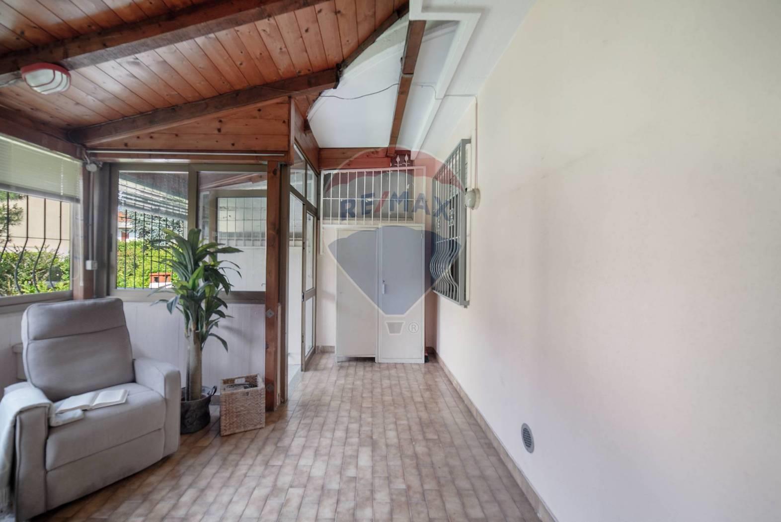 Al piano terra troviamo la cucina abitabile, un bagno di servizio, il soggiorno con porta finestra per accedere alla veranda chiusa e la seconda porzione di giardino di circa 100 metri quadri.