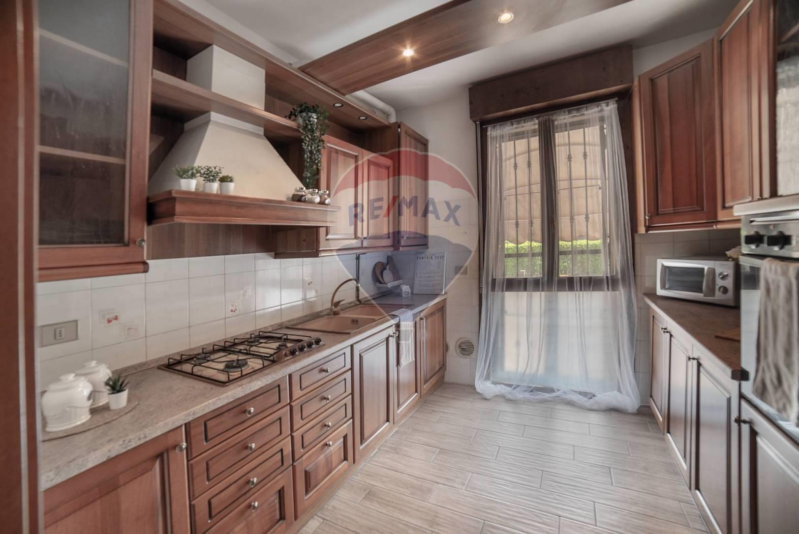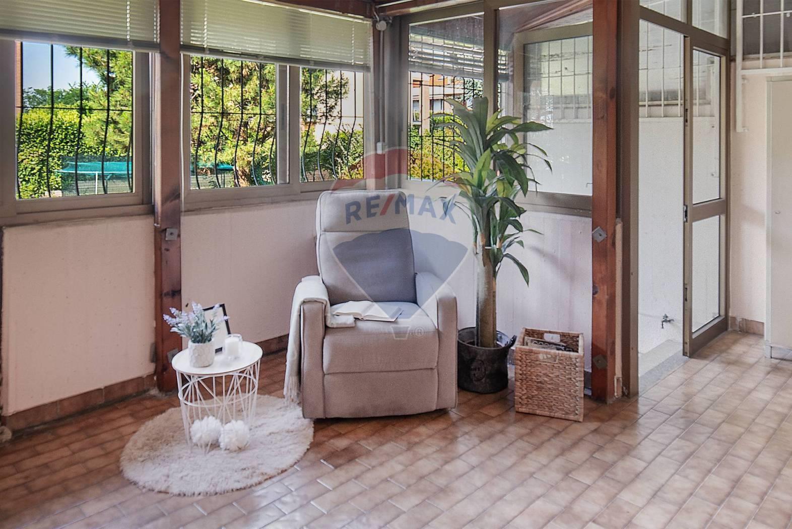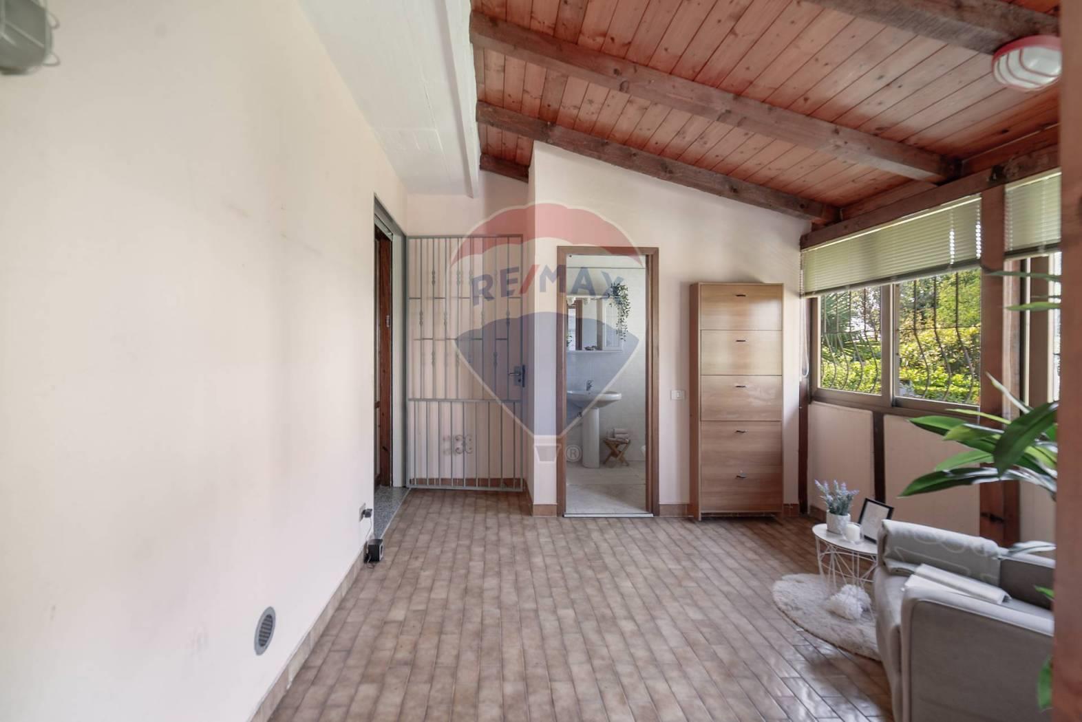 Al piano terra troviamo la cucina abitabile, un bagno di servizio, il soggiorno con porta finestra per accedere alla veranda chiusa e la seconda porzione di giardino di circa 100 metri quadri.