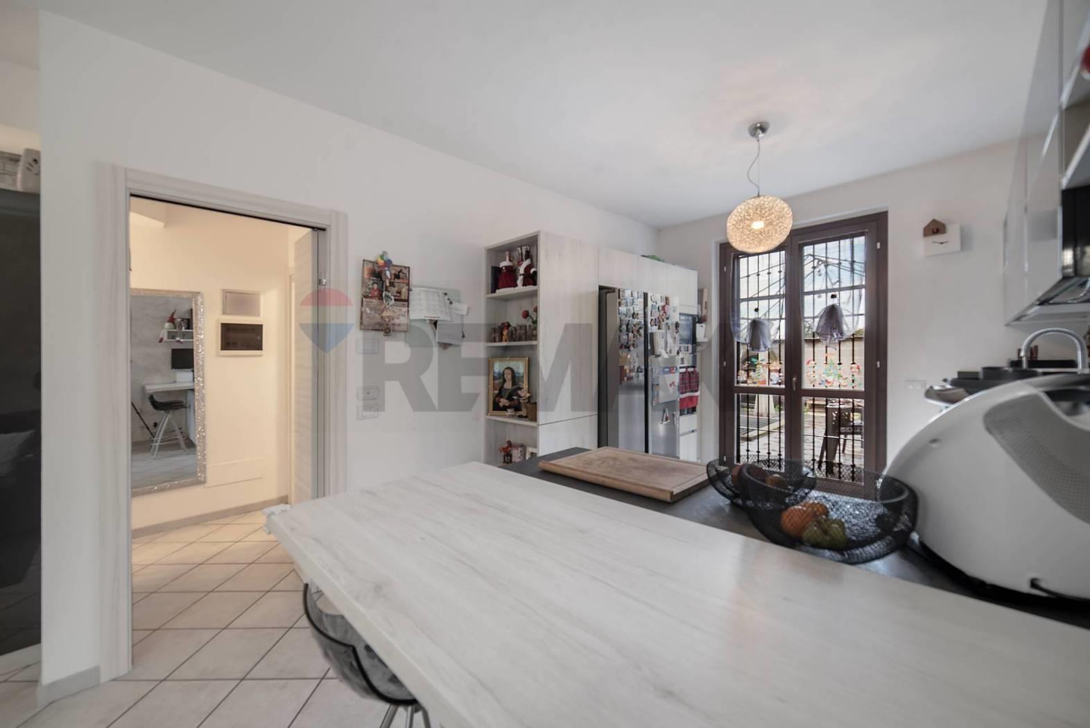 Varcando la soglia si viene accolti da una zona giorno luminosa, dove la cucina a vista diventa il cuore pulsante della casa: qui si condividono sorrisi, profumi, momenti. Le ampie vetrate si affacciano sul giardino privato, un angolo di tranquillità perfetto per colazioni all'aperto, giochi e serate d'estate, completa la zona giorno un bagno con ampia doccia.