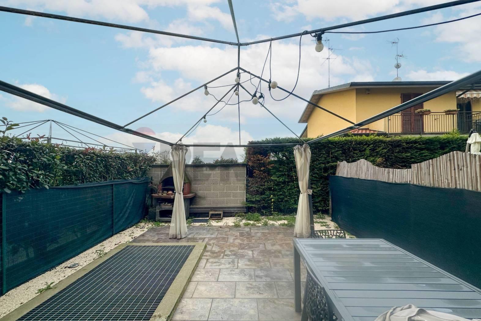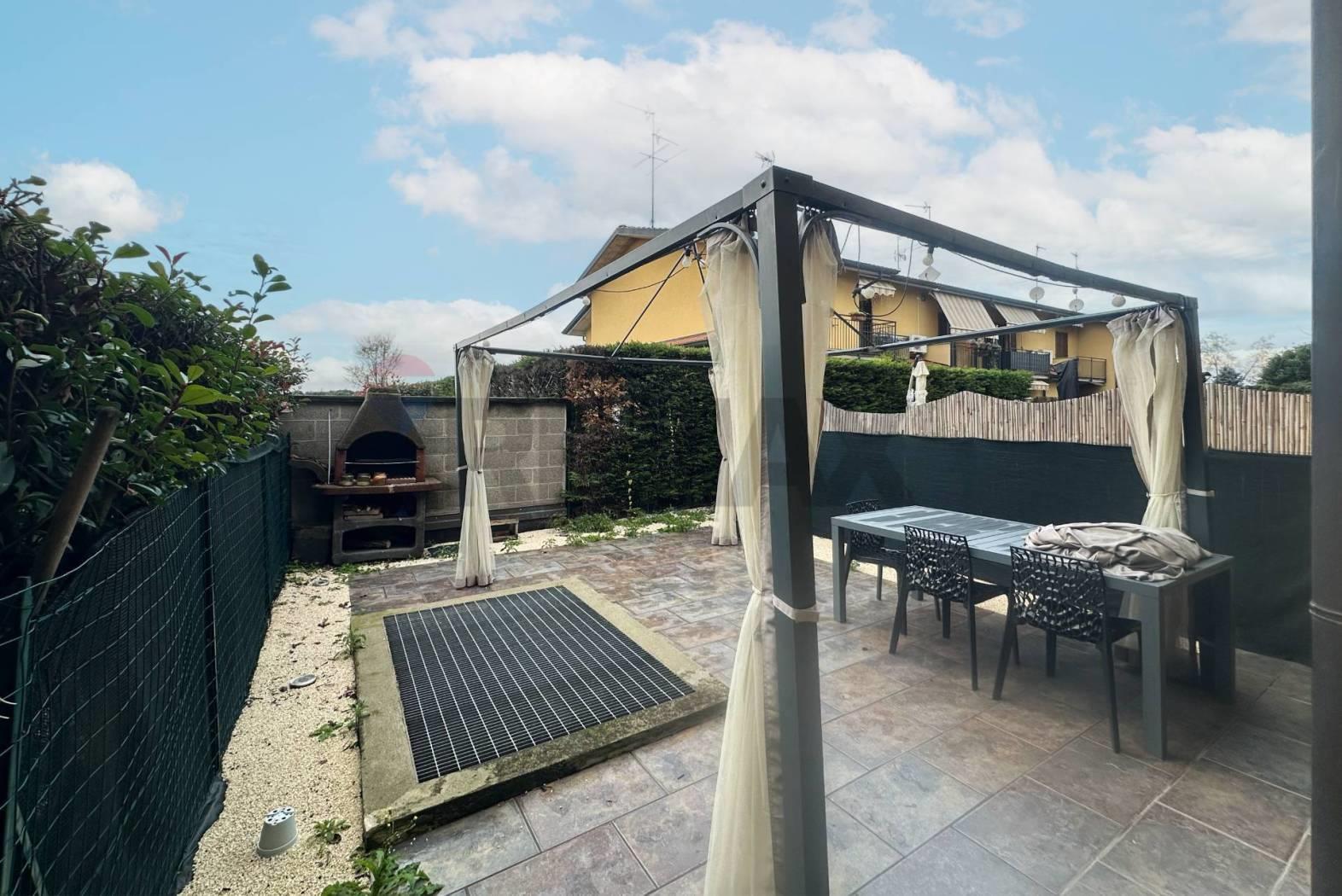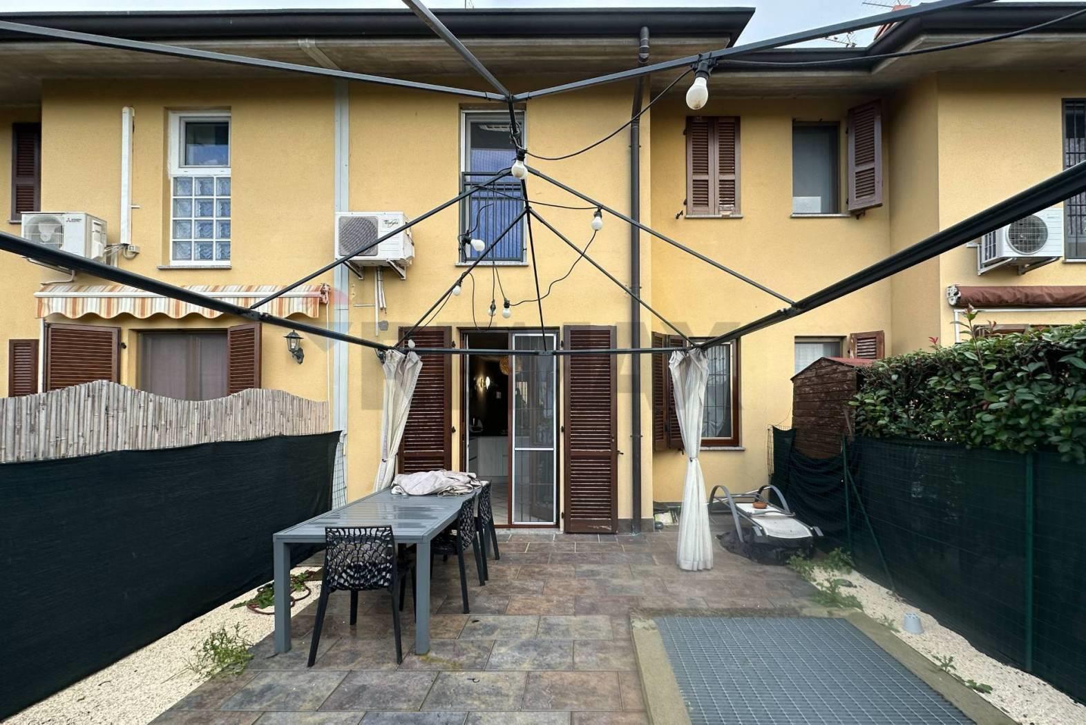 In una tranquilla zona di Groppello d'Adda, dove le giornate scorrono serene e il verde accompagna ogni passo, sorge questa raffinata villetta a schiera, pensata per chi desidera un luogo da chiamare davvero casa.