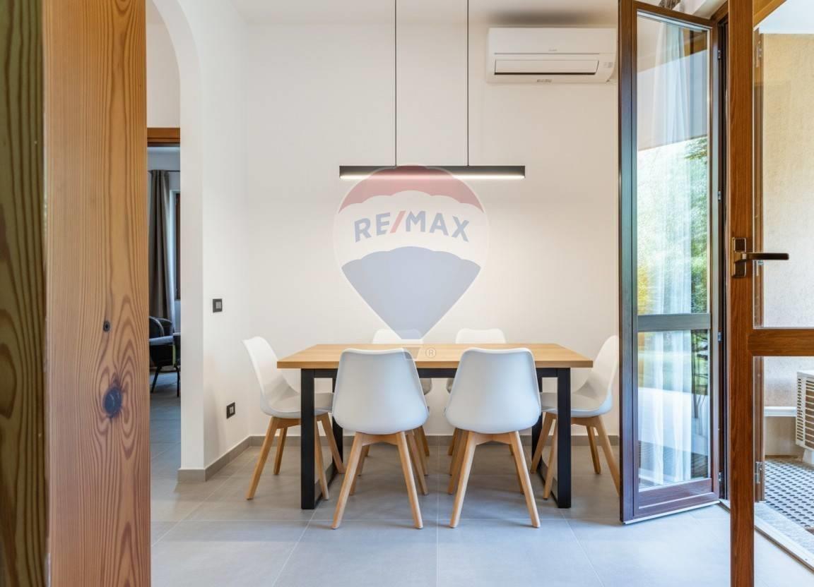 L'immobile offre un grande potenziale per essere personalizzato secondo i gusti e le esigenze dei futuri proprietari. Gli infissi e le finestre sono in alluminio con doppio vetro, che garantiscono un buon isolamento termico e acustico, corredati da imposte anch'esse in alluminio effetto legno, con regolazione frangisole. Presenti climatizzatori in pompa di calore nella zona pranzo e nelle tre camere.