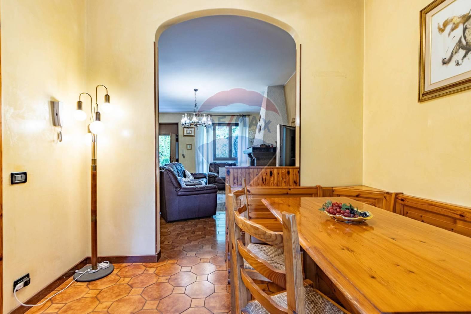 L'ingresso principale conduce ad un ampio soggiorno con camino e zona bar, mentre la cucina abitabile abbinata ad una zona pranzo offre ampi spazi per cucinare e mangiare in compagnia e dalla quale si accede ad un ampio portico coperto che si presta per creare una serra bioclimatica per avere uno spazio moderno e funzionale in connessione con il verde del nostro giardino privato per godere in ogni stagione lo spazio esterno con charme e modernità.