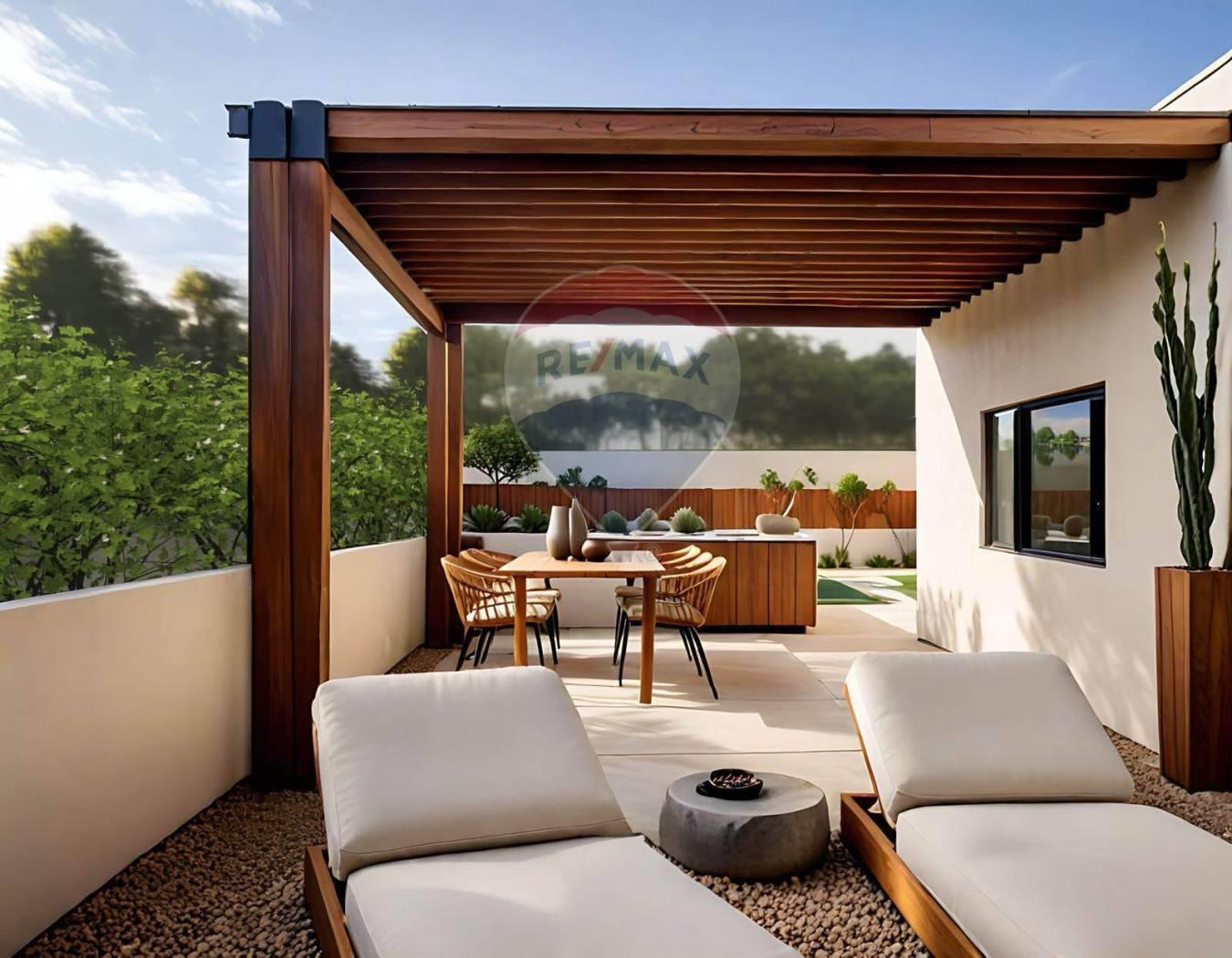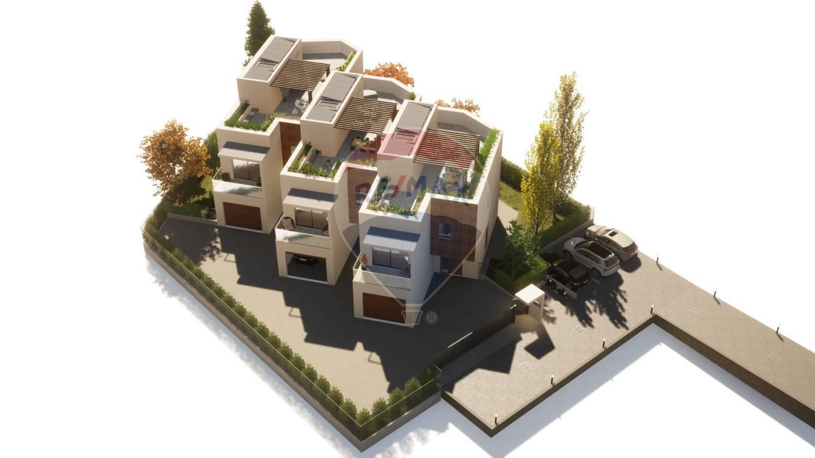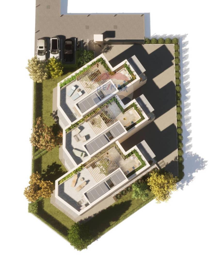 Dalla zona living abbiamo una scala interna che conduce al piano primo dove vi è la zona notte di (89 mq), composta da 3 camere da letto ( una matrimoniale e due singole), 2 bagni completi ed un locale lavanderia. La camera matrimoniale è impreziosita da una terrazza privata coperta di 7 mq, chiusa lateralmente al fine di garantire la privacy. Per una delle due camere singole è previsto un balcone che si affaccia verso il giardino. Sia la terrazza della camera che il balcone avranno un parapetto in vetro. Dal disimpegno del piano primo, la scala sale ulteriormente per giungere infine ad una splendida terrazza privata in copertura di 73 mq. Qui la residenza ha uno spazio favoloso di relax vista la presenza di una pergola che garantisce una zona d'ombra e di fioriere a verde che circondano la terrazza. Inoltre è previsto il locale tecnico destinato agli impianti.
