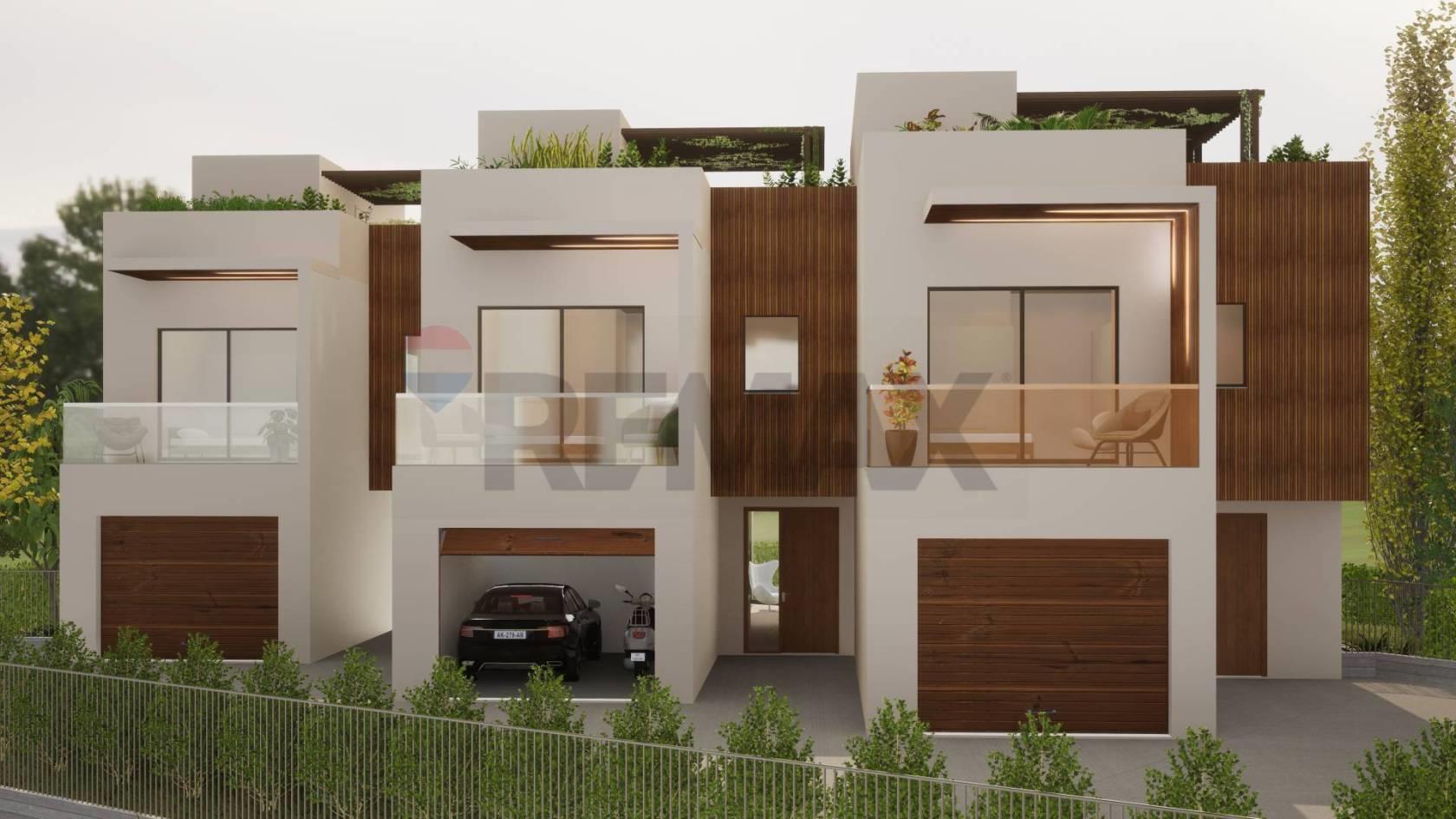 VILLA 3: la Villa 3 è la residenza di testa. Il portoncino d'accesso è stato progettato con una porzione del piano superiore aggettante, al fine di formare un'area riparata fuori dalla zona della porta principale. Il piano terra di 74 mq si caratterizza da un'ampia zona giorno open space che si affaccia direttamente sul giardino privato (134. mq) e verso le migliori esposizioni solari, al fine di sfruttare al meglio l'apporto della luce solare e garantire una buona illuminazione naturale degli ambienti. Al piano terra vi è poi la presenza di un bagno completo, un ripostiglio ed un disimpegno che collega direttamente l'abitazione al box auto privato.
