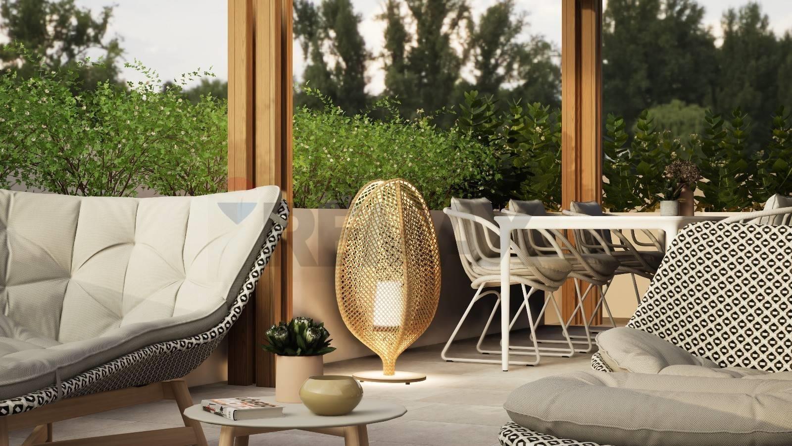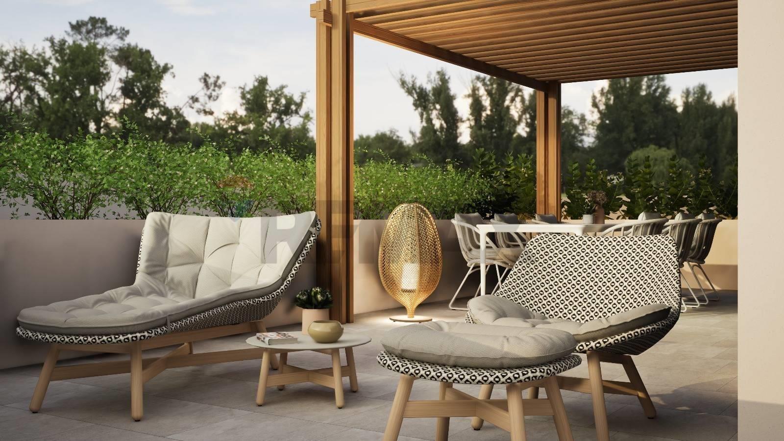 Dalla zona living abbiamo una scala interna che conduce al piano primo dove vi è la zona notte di (97 mq), composta da 3 camere da letto ( una matrimoniale e due singole), 2 bagni completi ed un locale lavanderia. La camera matrimoniale è impreziosita da una terrazza privata coperta di 7 mq, chiusa lateralmente al fine di garantire la privacy. Per una delle due camere singole è previsto un balcone che si affaccia verso il giardino. Sia la terrazza della camera che il balcone avranno un parapetto in vetro. Dal disimpegno del piano primo, la scala sale ulteriormente per giungere infine ad una splendida terrazza privata in copertura di 77 mq. Qui la residenza ha uno spazio favoloso di relax vista la presenza di una pergola che garantisce una zona d'ombra e di fioriere a verde che circondano la terrazza. Inoltre è previsto il locale tecnico destinato agli impianti.