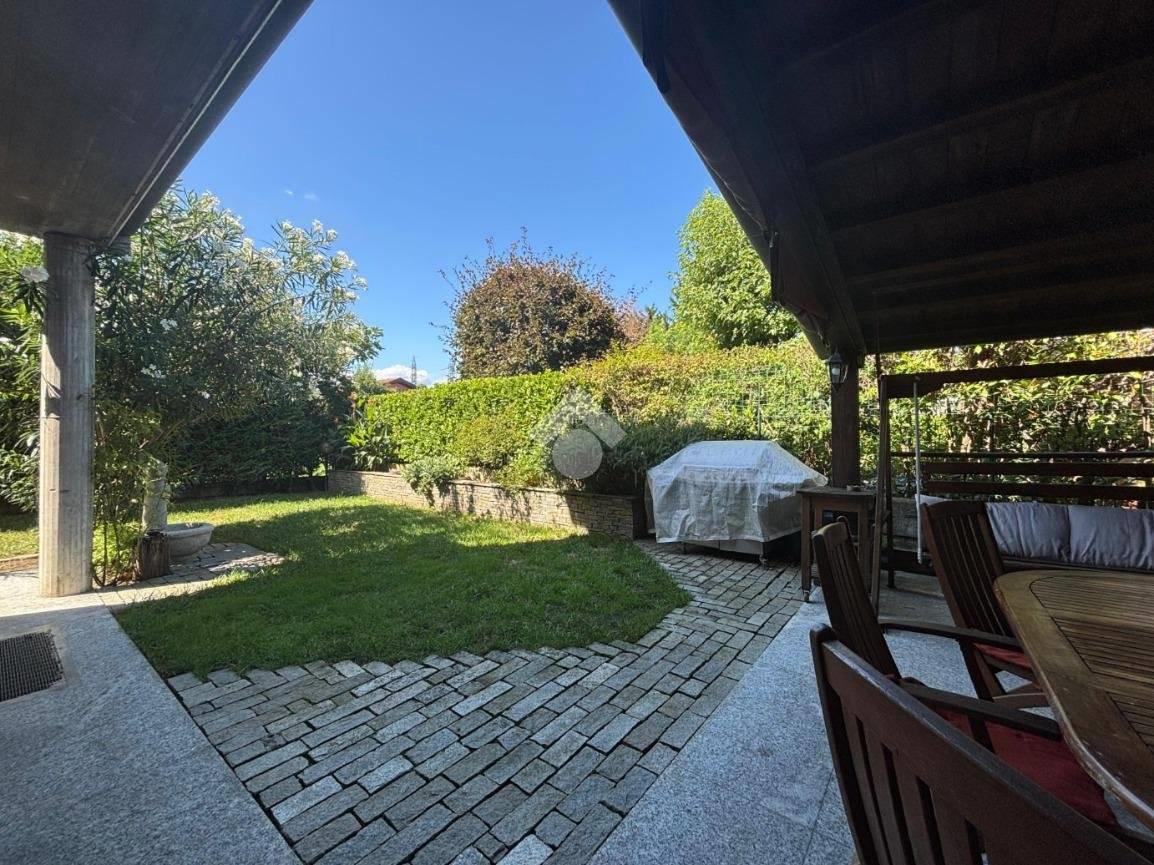 La posizione d'angolo della villa assicura una maggiore luminosità e un accesso diretto al giardino privato che circonda la proprietà, perfetto per momenti di relax all'aperto.