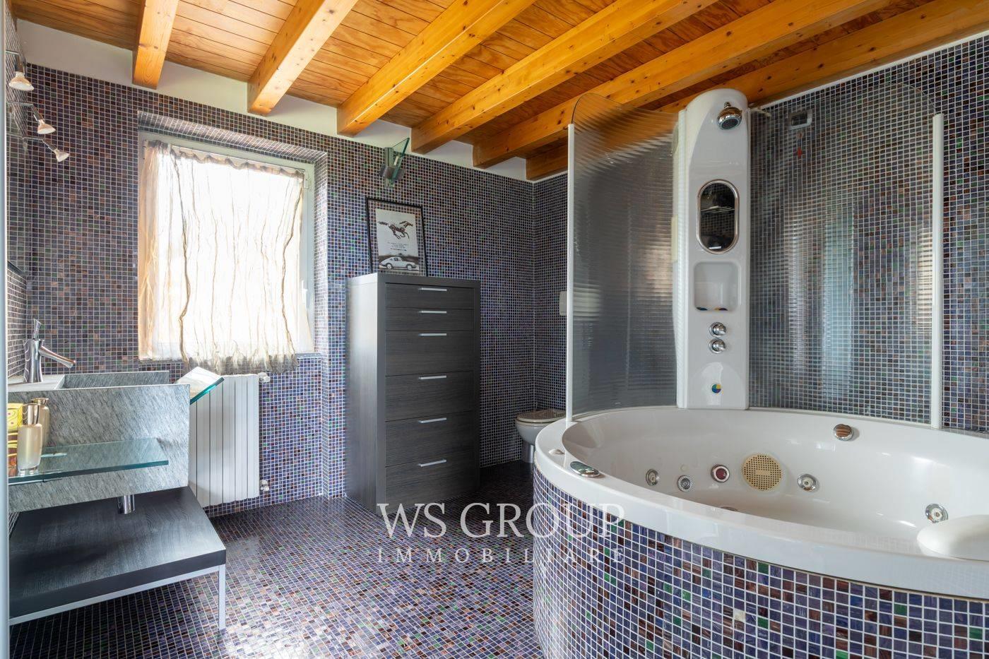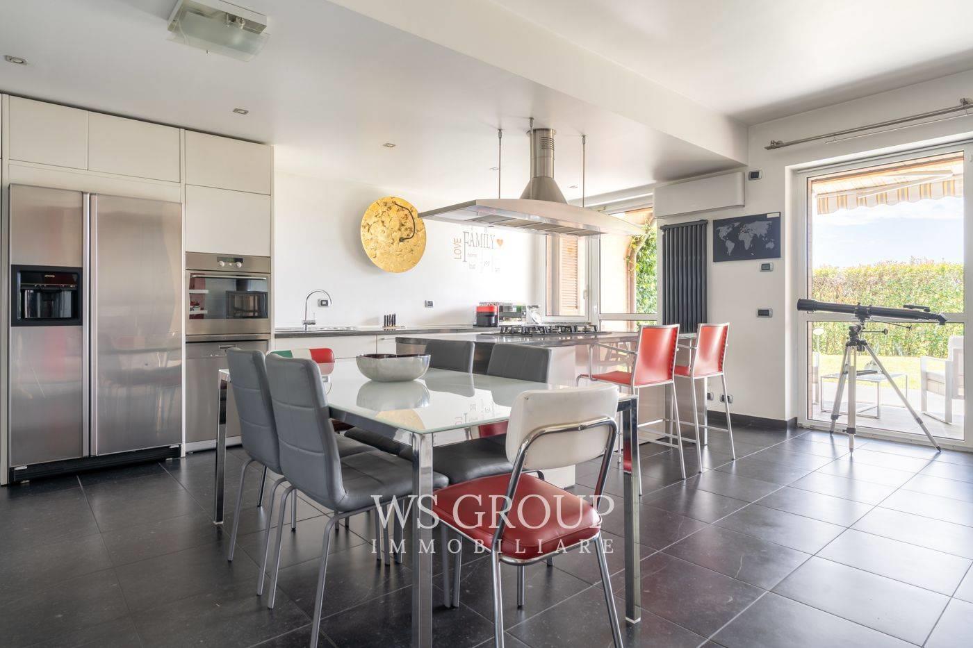 La villa gode di una posizione centrale e di un giardino privato, valorizzato da una zona loggiata e da un’area barbecue, che garantiscono riservatezza e permettono di vivere piacevoli momenti all’aperto. L’ingresso introduce alla spaziosa zona giorno, dove ampie vetrate regalano una luminosità straordinaria e incorniciano il verde che circonda la proprietà. Gli ambienti sono stati progettati con razionalità, offrendo un’ampia area living, una zona pranzo ben definita e una cucina con isola centrale dalle generose dimensioni. Completa il piano uno studio verandato, adiacente all’ingresso. Al primo piano, interamente destinato alla zona notte, troviamo una master room con un elegante bagno en suite dotato di vasca idromassaggio e cabina armadio, oltre a una seconda camera doppia servita da un secondo bagno finestrato con doccia. Il secondo piano, mansardato, è ideale per ospitare una zona notte indipendente oppure un ambiente dedicato allo smart working. La taverna è anch’essa ben rifinita e dispone di una seconda cucina completamente attrezzata, un terzo servizio, una zona lavanderia e una comoda cantina. A completare la proprietà, un box doppio in larghezza collegato direttamente all’abitazione.