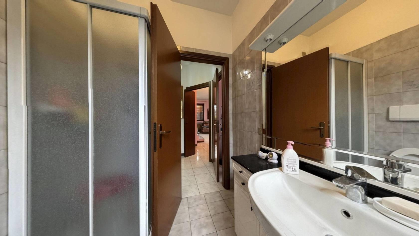 L'abitazione prosegue con un sottotetto diviso in due vani oltre al ripostiglio e un piano seminterrato molto spazioso. Quest'ultimo ospita una taverna con camino e cucina, un locale lavanderia e il collegamento diretto al box doppio.