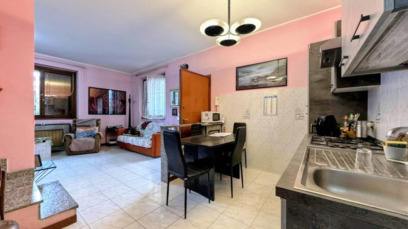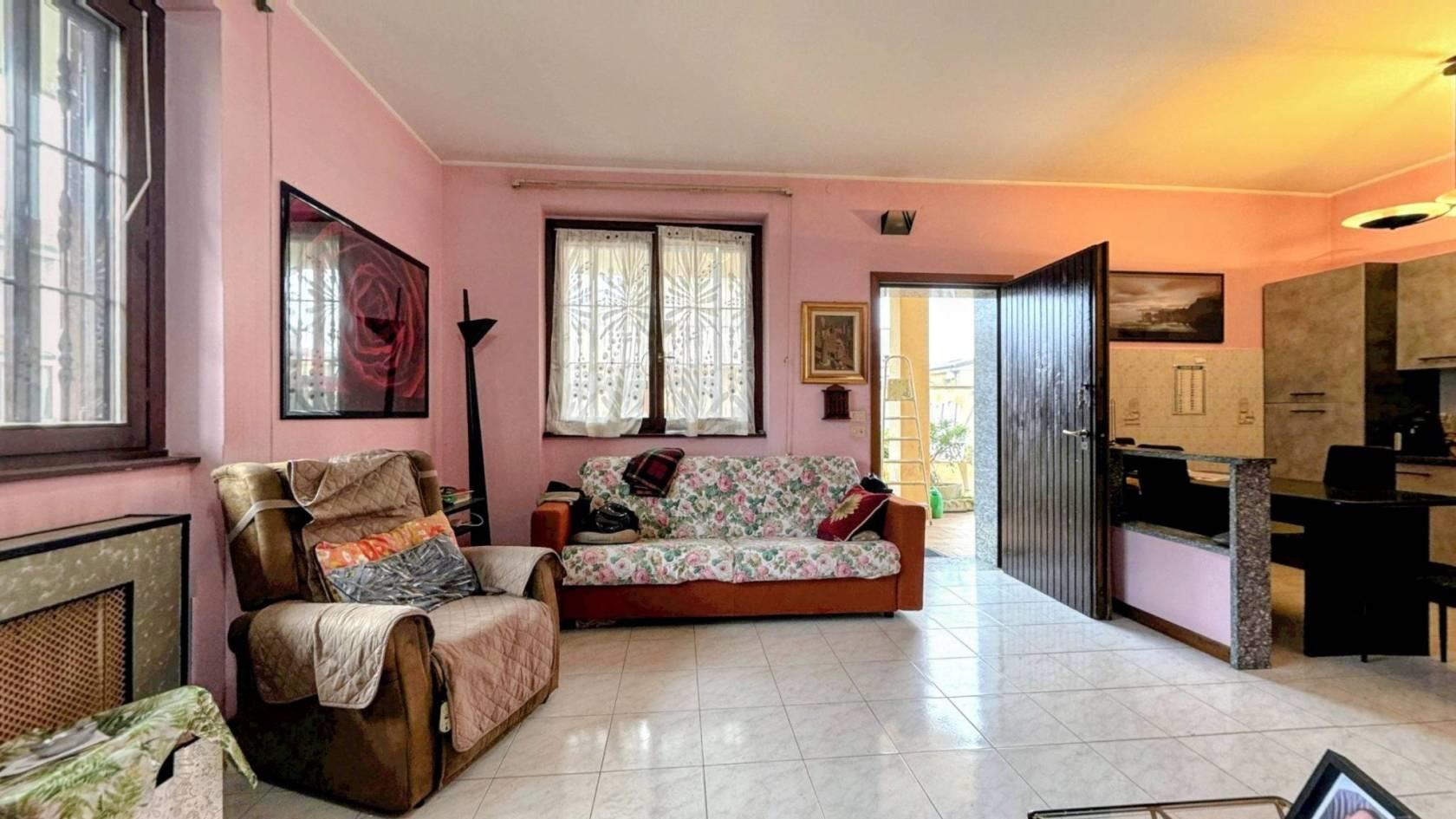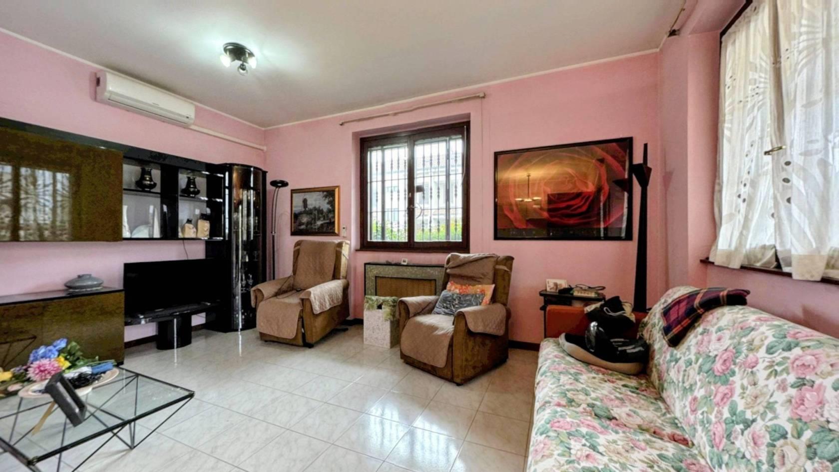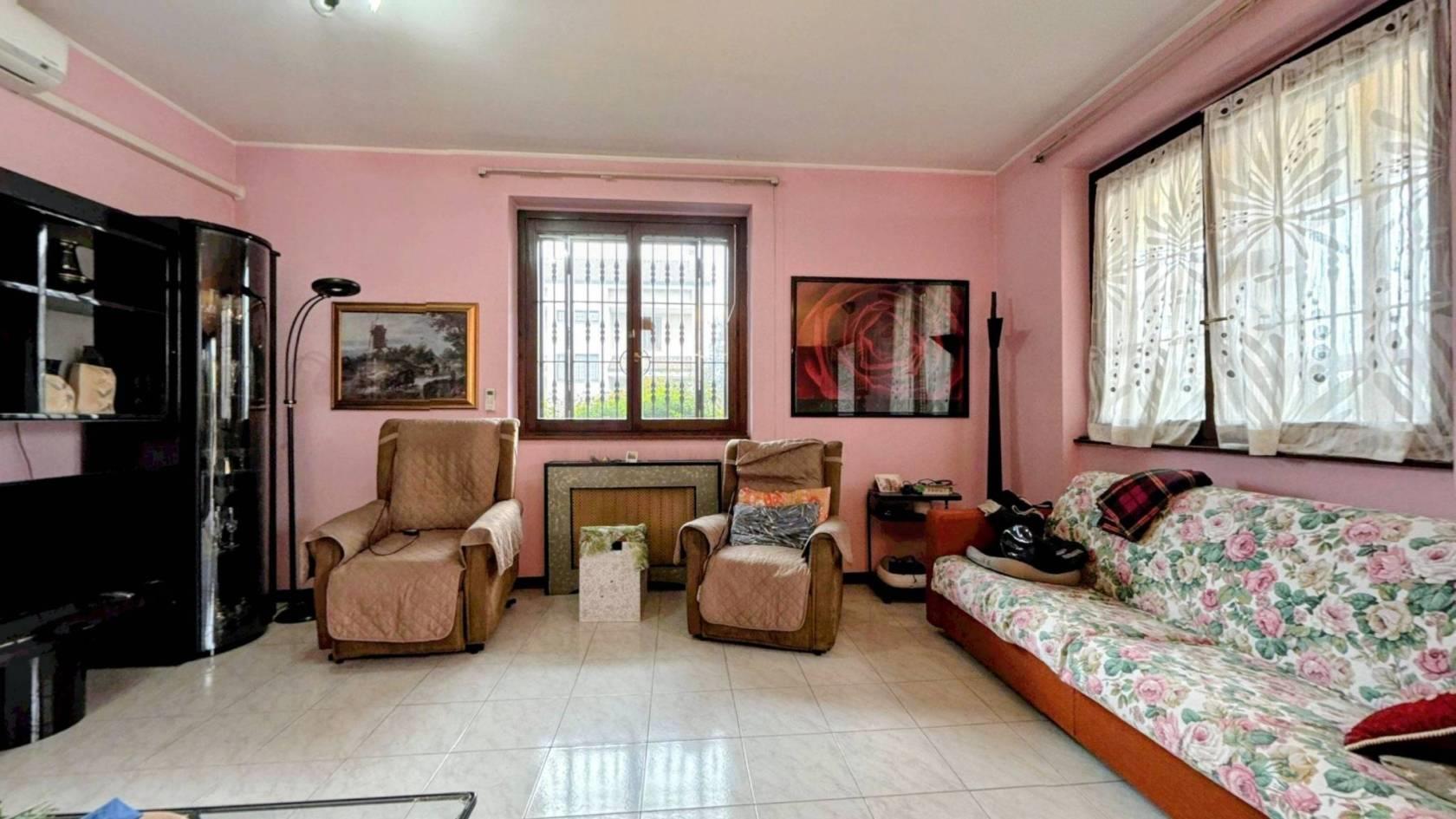 Il piano terra si apre su un soggiorno luminoso con cucina a vista. Un disimpegno conduce alla zona notte del piano, composta da una camera matrimoniale con uscita diretta sul giardino e un bagno. Al primo piano si trovano altre due stanze ampie, attualmente sfruttate come seconda zona giorno ma facilmente ripristinabili come camere da letto, di cui una servita da un balcone, un bagno di servizio con vasca completa il piano.