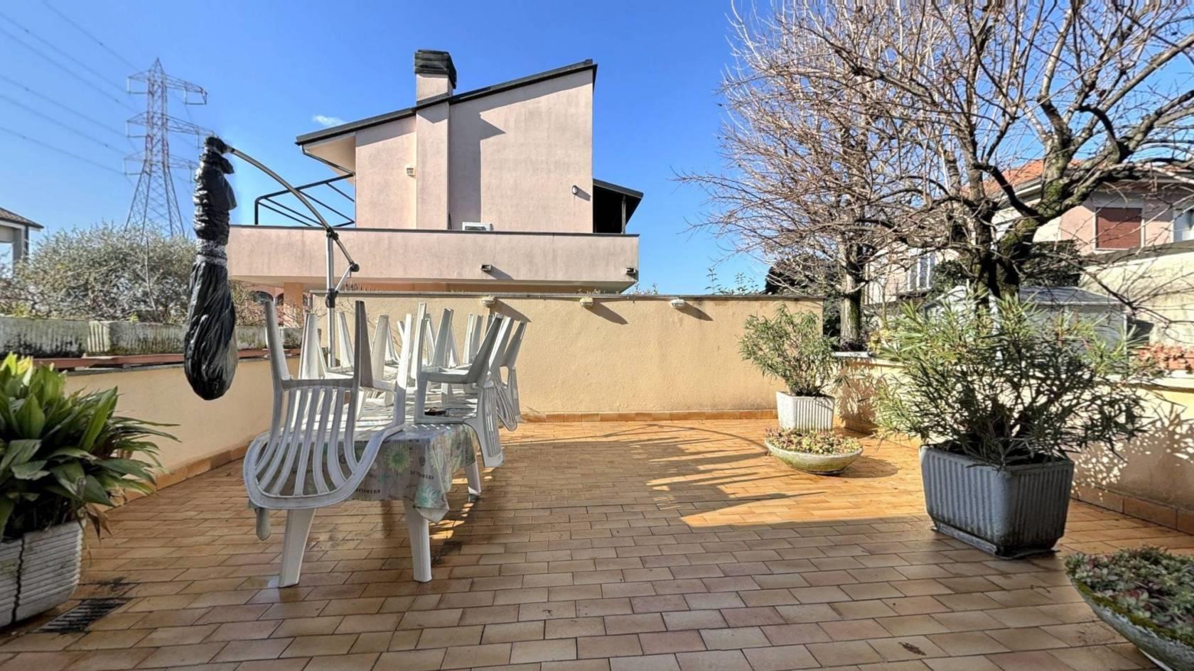 Brugherio, zona bennet, in contesto di sole ville, proponiamo una villetta a schiera di testa disposta su quattro livelli. La proprietà è circondata da un ampio giardino privato, diviso tra un’area pavimentata e una zona a prato.