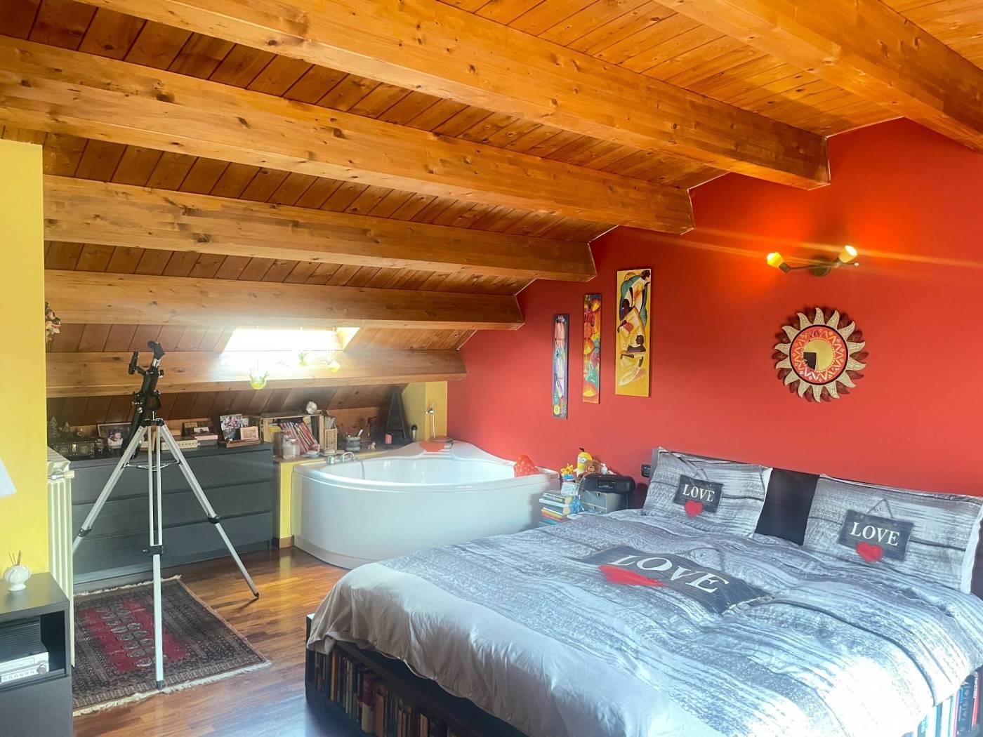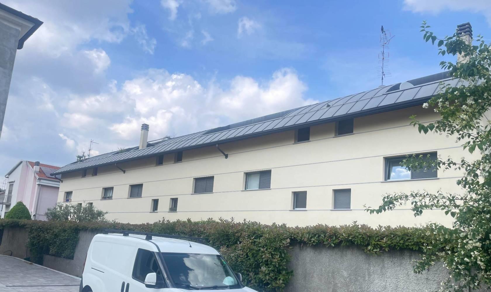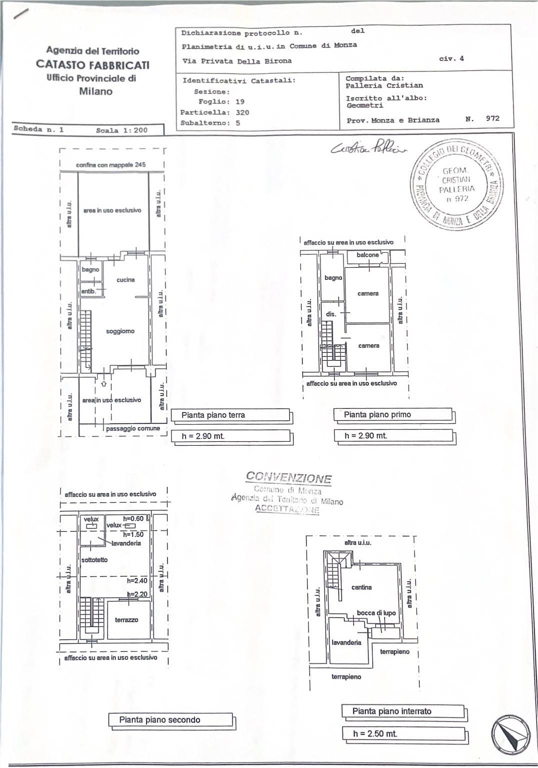 Monza Cazzaniga, via Birona,4 in contesto di sole cinque ville a schiera, porzione di villa composta da. piano terra mq. 60c.a ingresso ampio soggiorno con cucina, giardino pavimentato mq.60 c.a, antibagno e bagno, scale in acciaio per accede al piano primo mq.60,dove troviamo due camere, bagno, balcone, piano mansarda mq.60c.a con tetto a botte molto spaziosa, camera, con bagno e terrazzino. Piano taverna con lavanderia e box doppio in larghezza. Libera a rogito.