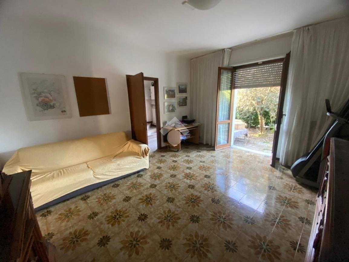 Al piano terra, l'ampio soggiorno e la cucina abitabile si affacciano direttamente sul giardino privato, offrendo un ottimo spazio esterno per momenti di relax o cene all'aperto. Completa questo piano un bagno con box doccia, comodo e funzionale.