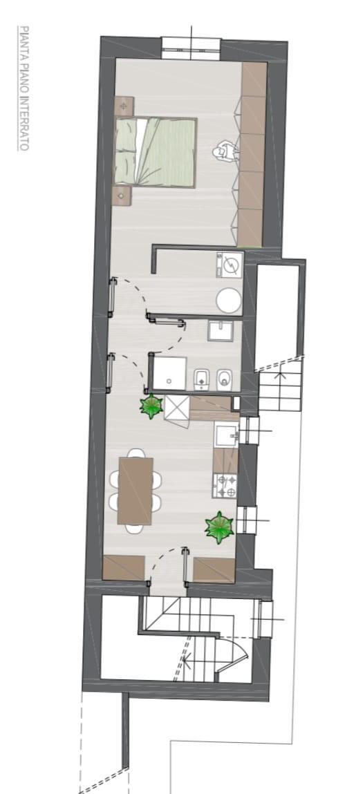 Dalla scala interna si accede al pano seminterrato zona TAVERNA con ingresso in cucina, disimpegno, locale caldaia, bagno e camera.