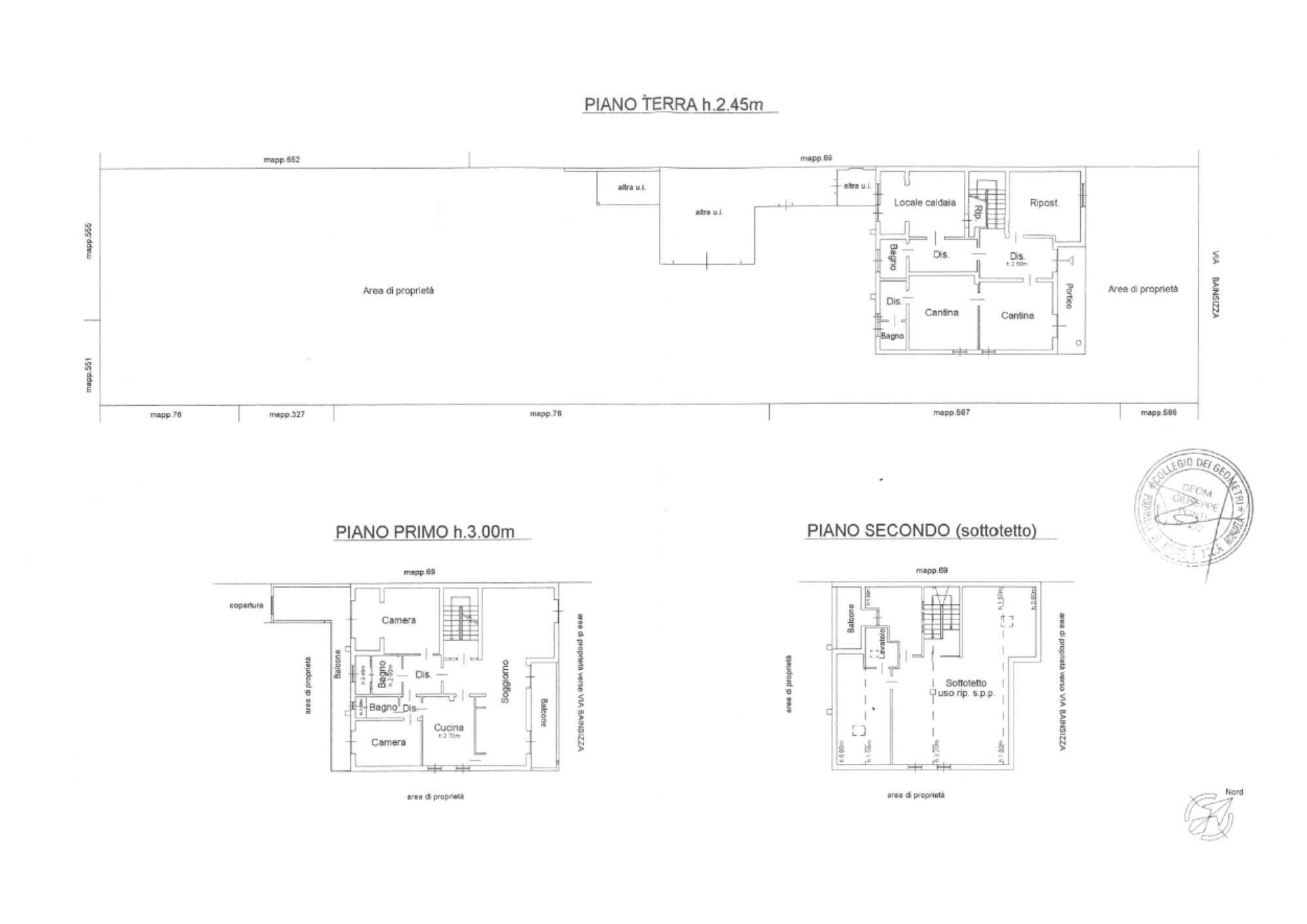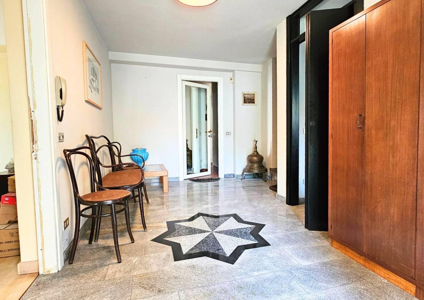 Il primo piano ospita un appartamento elegante con soggiorno e zona pranzo affacciati su balcone, cucina separata, due camere, due bagni e una suite matrimoniale con cabina armadio. Sul retro, un terrazzo coperto utilizzabile tutto l'anno.