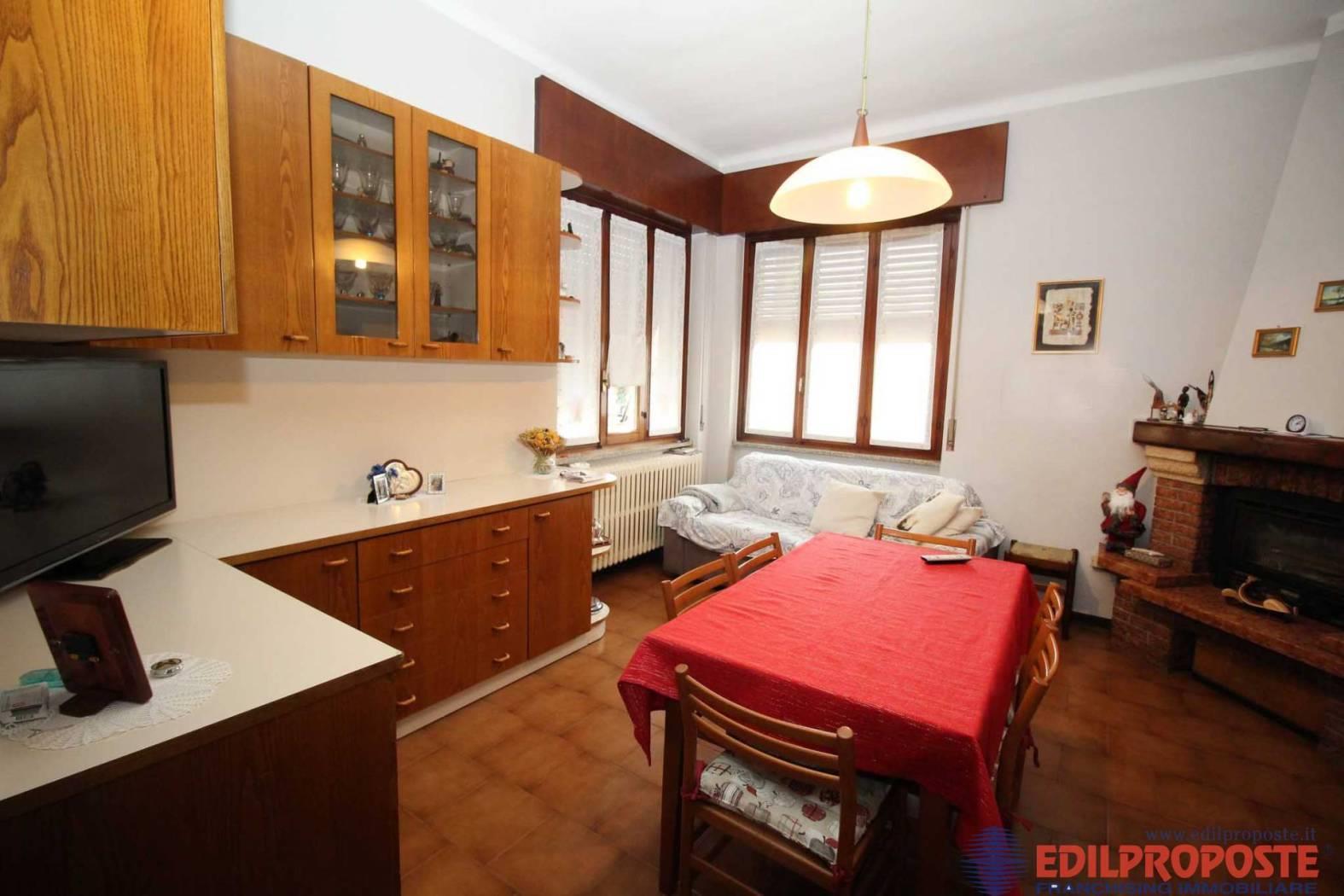 L'appartamento al piano terra, abitabile ma da rinnovare, accoglie con ambienti ampi e luminosi: