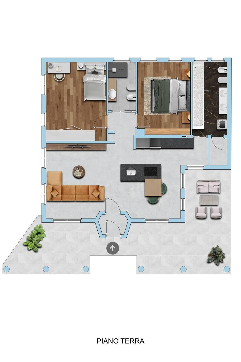 Gli interni sono caratterizzati da un'atmosfera luminosa, grazie alla doppia esposizione est-ovest, e da un design moderno e curato nei minimi dettagli. L'impianto di riscaldamento è autonomo e alimentato a metano, garantendo un comfort abitativo ottimale. La villa dispone di un giardino privato, perfetto per godere di momenti di relax all'aria aperta. La cucina a vista, perfettamente integrata nell'ampio soggiorno, offre un'atmosfera conviviale e funzionale.