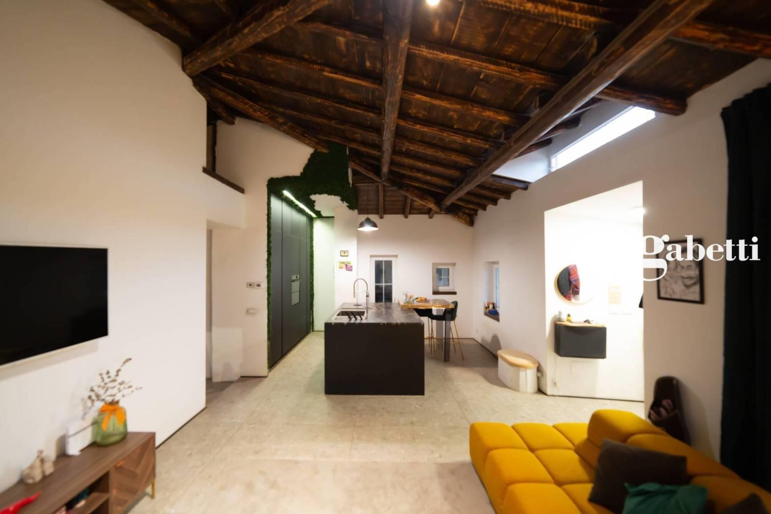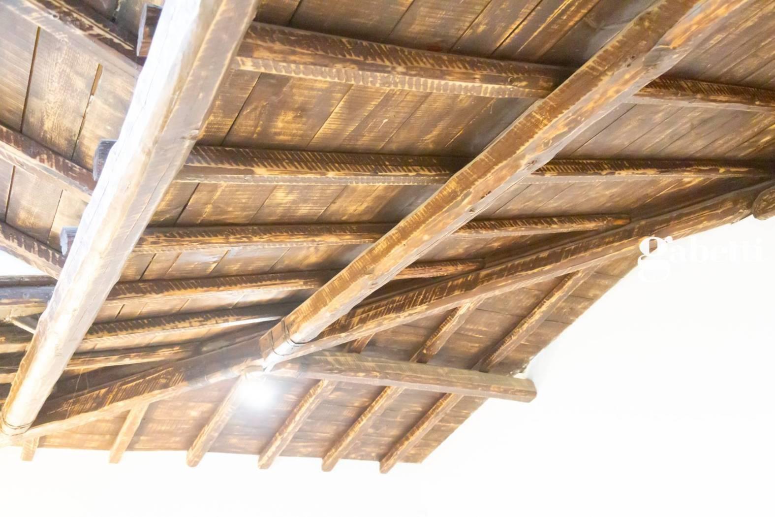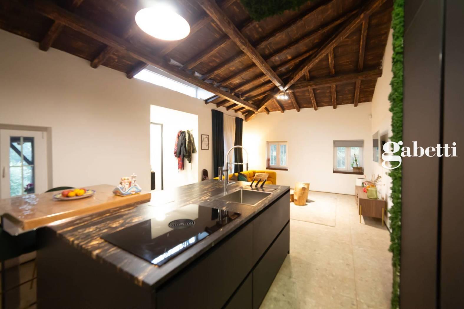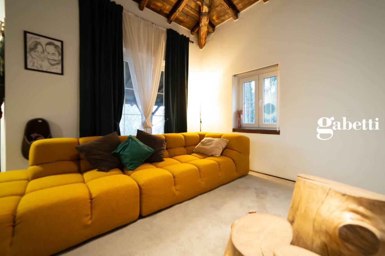 Sirtori - In piccolo residence con cancello condominiale disponiamo di villa bifamiliare disposta su un unico livello abitativo con travi a vista, soffitti a doppia altezza, circondata da 1100 mq di giardino.