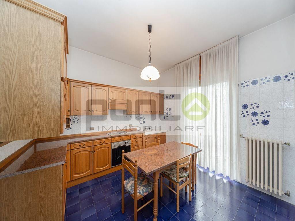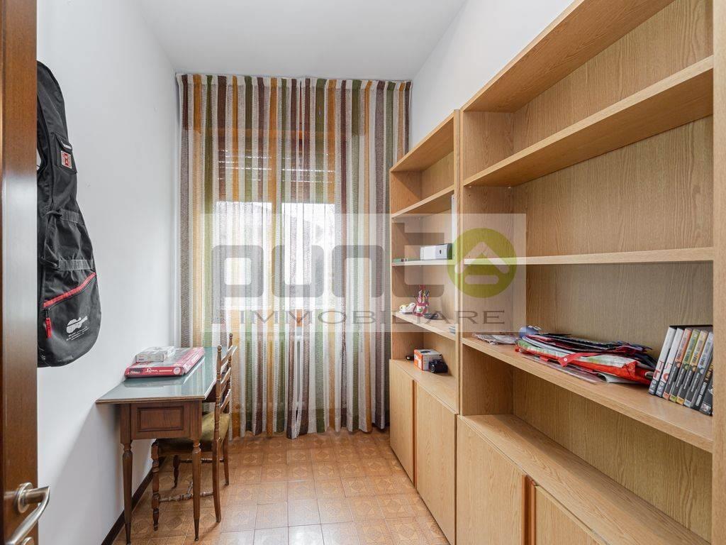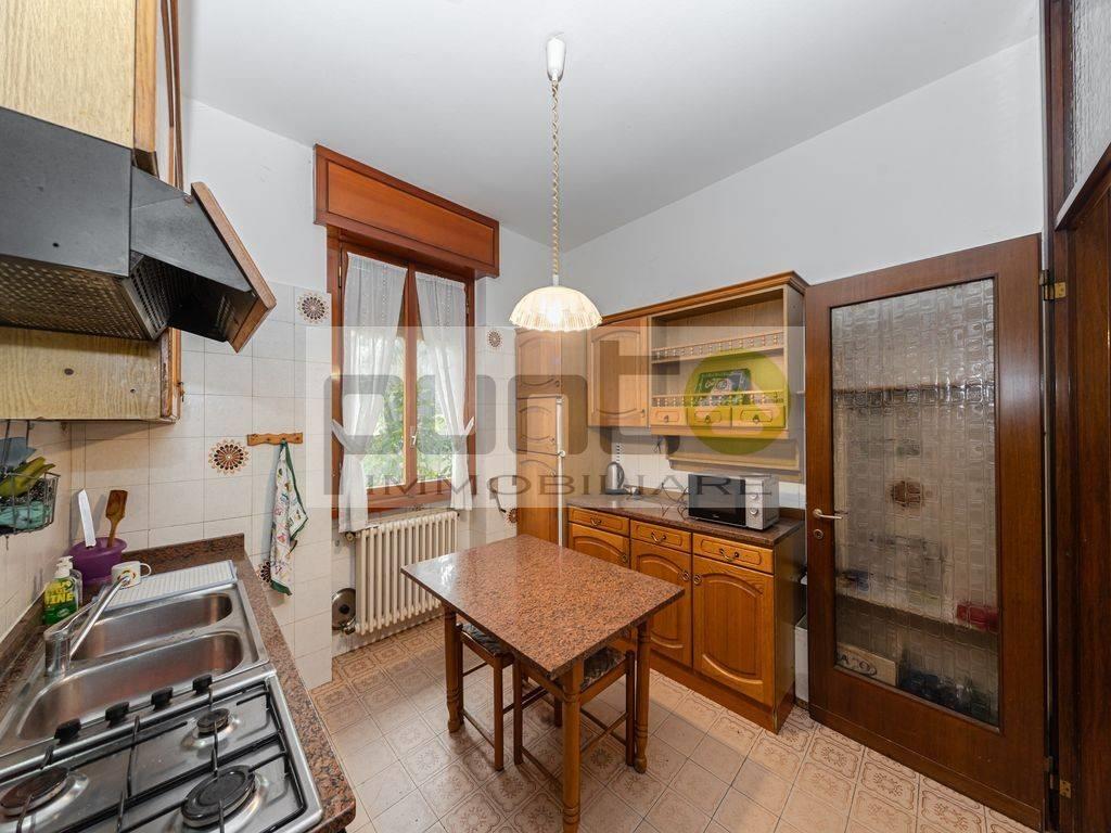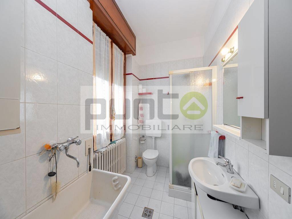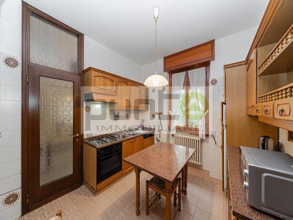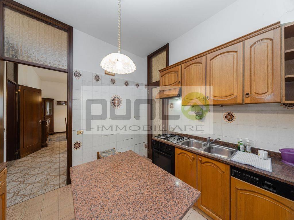 Il primo piano, collegato tramite la scala comune, ospita un appartamento composto da quattro locali. Qui troviamo un ampio soggiorno dotato di balcone, una cucina abitabile, un disimpegno che conduce alla zona notte, un bagno principale, una camera matrimoniale con piccolo bagno privato e due camere singole, ideali per bambini o ospiti.