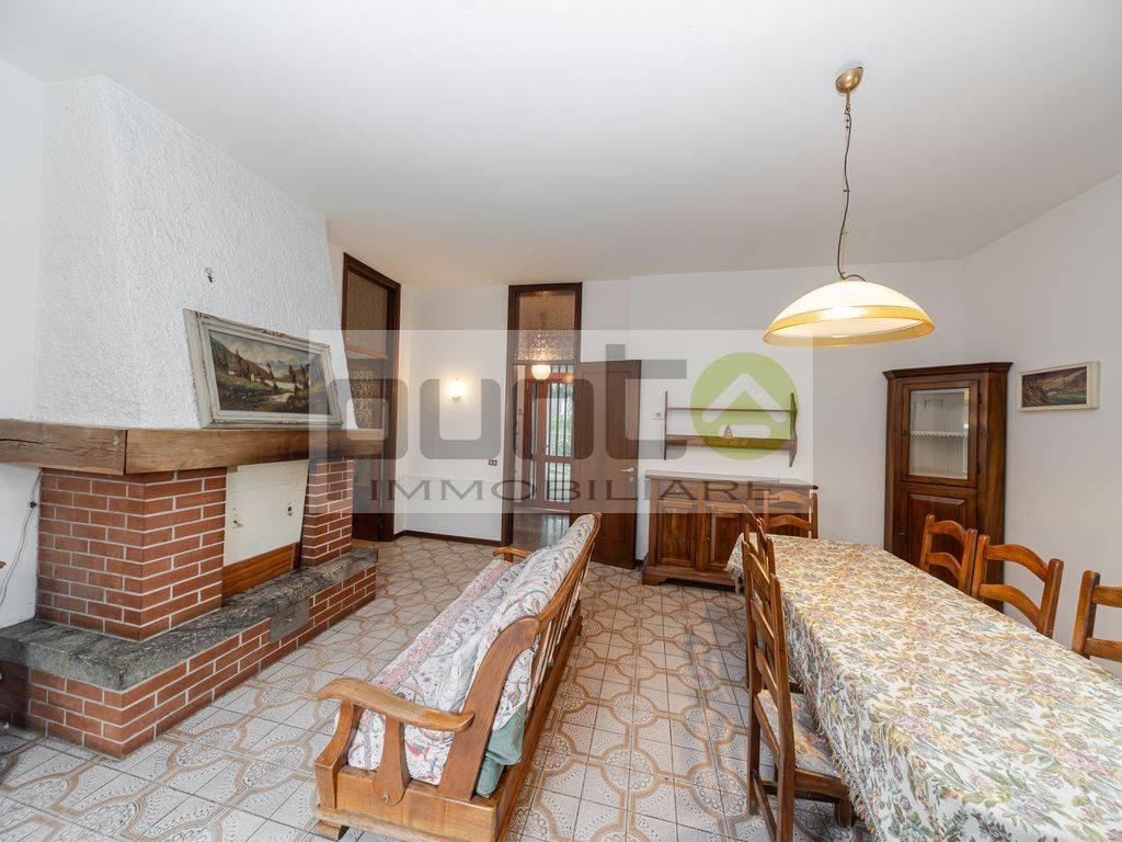 Edificata nel 1971, la villa è suddivisa in due appartamenti distinti, perfetti per accogliere due nuclei familiari. L'accesso avviene attraverso un vialetto in beole che conduce al grande porticato, da cui si raggiunge l’ingresso principale e la scala comune che collega i diversi livelli dell’abitazione.