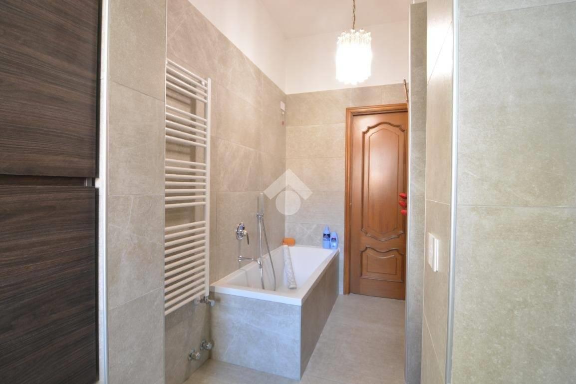 La scala interna in muratura conduce al piano superiore dove è collocato un trilocale di buona metratura composto da soggiorno con balcone coperto accessibile anche dalla cucina abitabile, servizio finestrato con vasca (anch'esso di recente rinnovo), camera da letto matrimoniale e seconda camera con balcone dedicato.