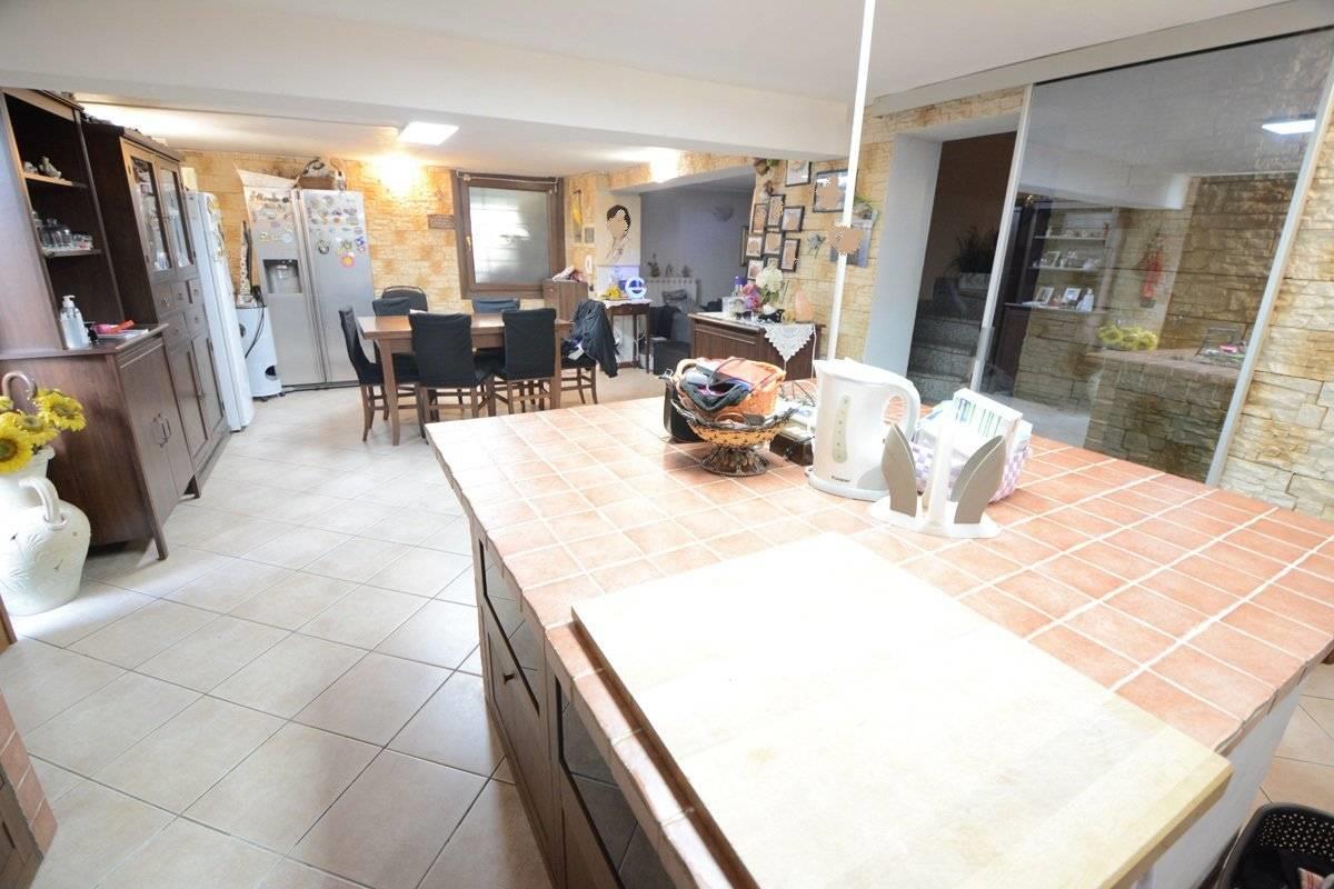 Si prosegue quindi al piano interrato dove troviamo accogliente taverna con stufa a pallets, adibita ad ulteriore cucina zona pranzo e relax, nonché funzionale lavanderia.