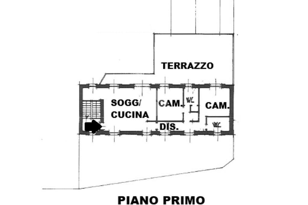 Al piano terra troviamo l'accesso al vano scale esclusivo che permette di accedere sia all'appartamento che alla cantina sita nel piano interrato.