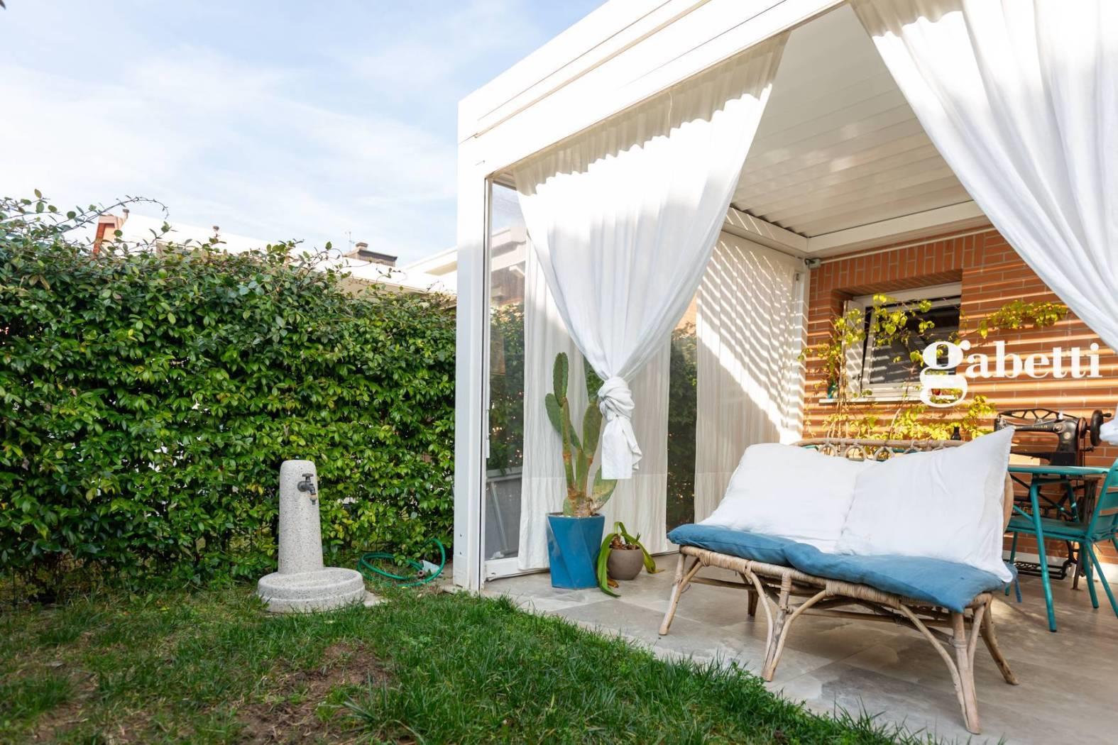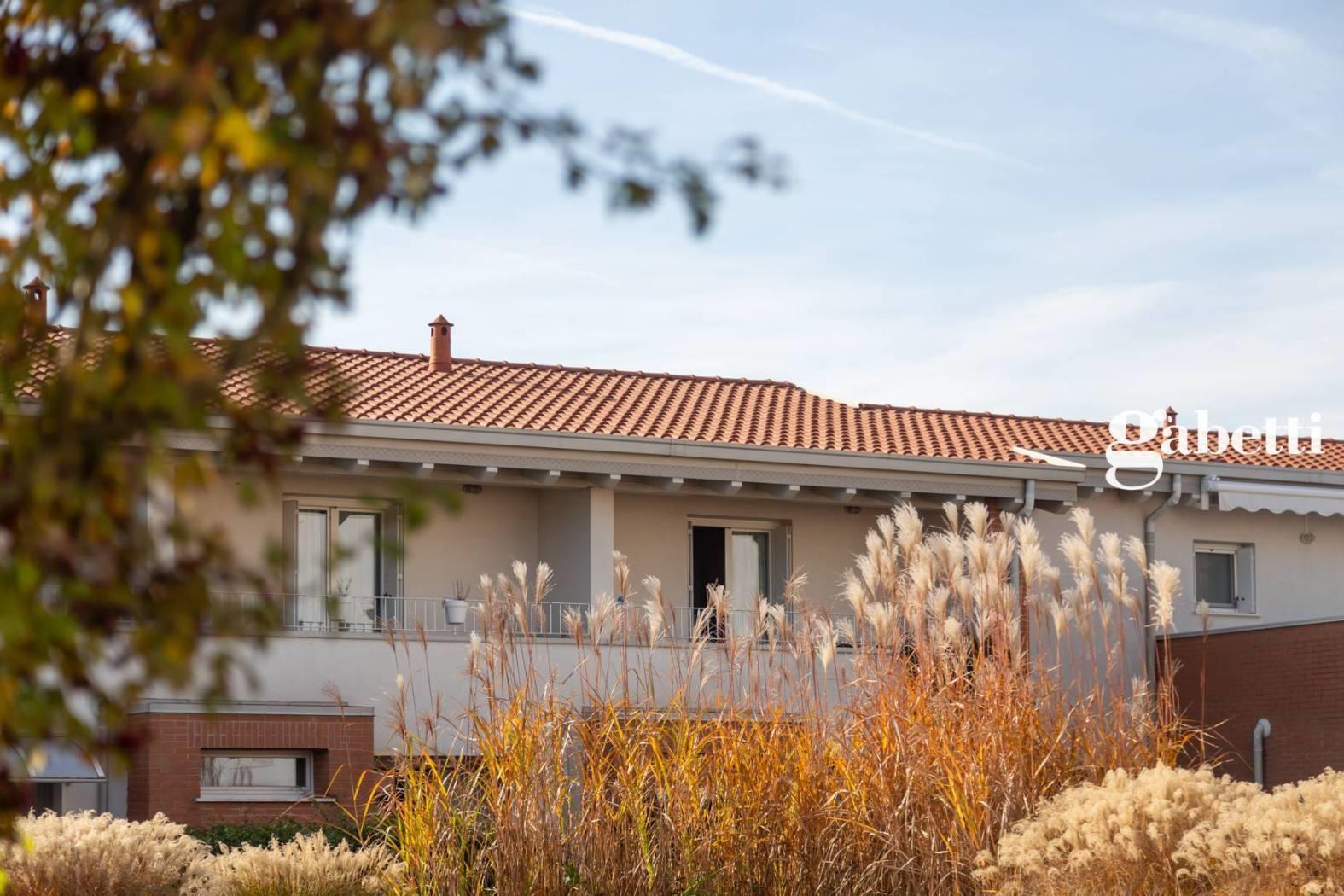Bernareggio - A due passi dal centro, splendida villa con pergola bioclimatica e piscina condominiale. Bilivello, l'immobile è composto da un open space al piano terra, con cucina a vista arredata con stile minimalista e bagno con doccia walk-in. Le pavimentazioni sono in resina e hanno il dono di alternarsi con colori suscitando preziose emozioni. La zona giorno è completata da un giardino privato delimitato da gelsomino. La zona notte è composta da due camere di cui la suite ha una cabina armadio separata ed un balcone privato. Completa la proprietà un secondo servizio con piacevole vasca in resina. I bagni saranno consegnati completamente arredati. La villa è rifinita con materiali di alta qualità. L'impianto di riscaldamento è a pavimento e permette una distribuzione uniforme del calore. Gli infissi e le finestre sono in doppio vetro legno, e garantiscono un'ottimo isolamento sia termico che acustico.