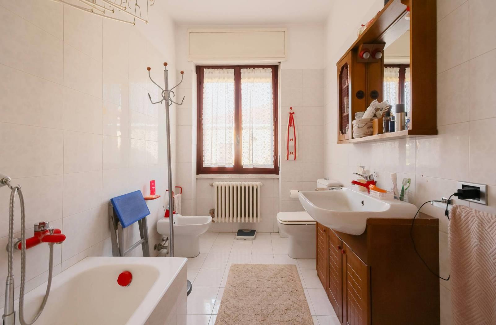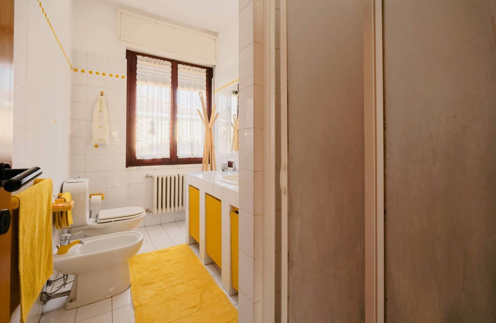 Attraverso un comodo disimpegno si accede alla zona notte dove troviamo due bagni, entrambi finestrati, e due ampie camere da letto.