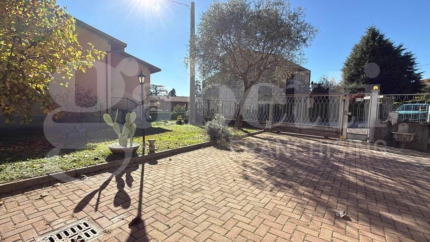 villa singola bifamiliare con giardino pianeggiante ,locali accessori e box doppio.