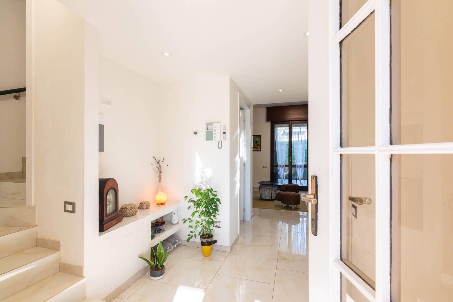 All’esterno, il giardino di circa 320 mq circonda la villa su tre lati, offrendo privacy e la possibilità di vivere gli spazi all’aperto in ogni stagione.