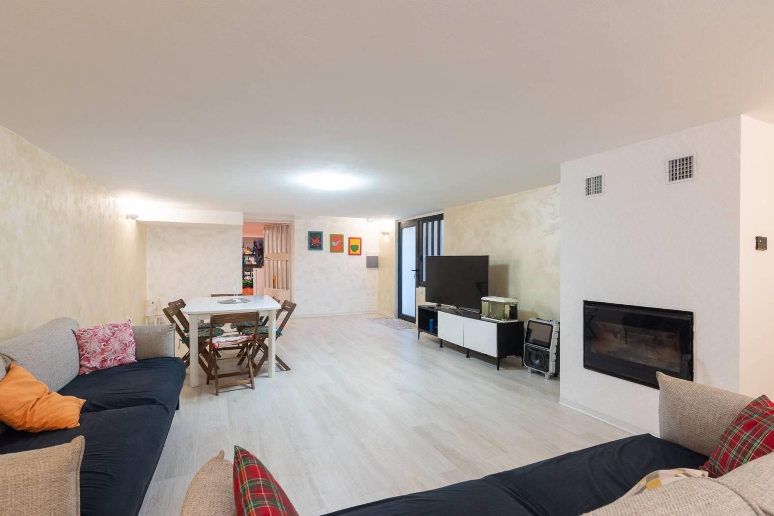 Il piano seminterrato aggiunge un valore concreto alla casa: una taverna ampia e accogliente con nuovo camino Palazzetti certificato 5 stelle, ideale per momenti conviviali e relax.