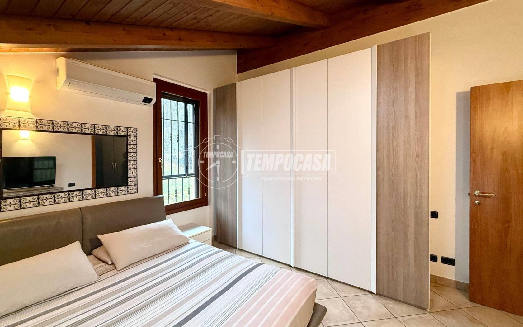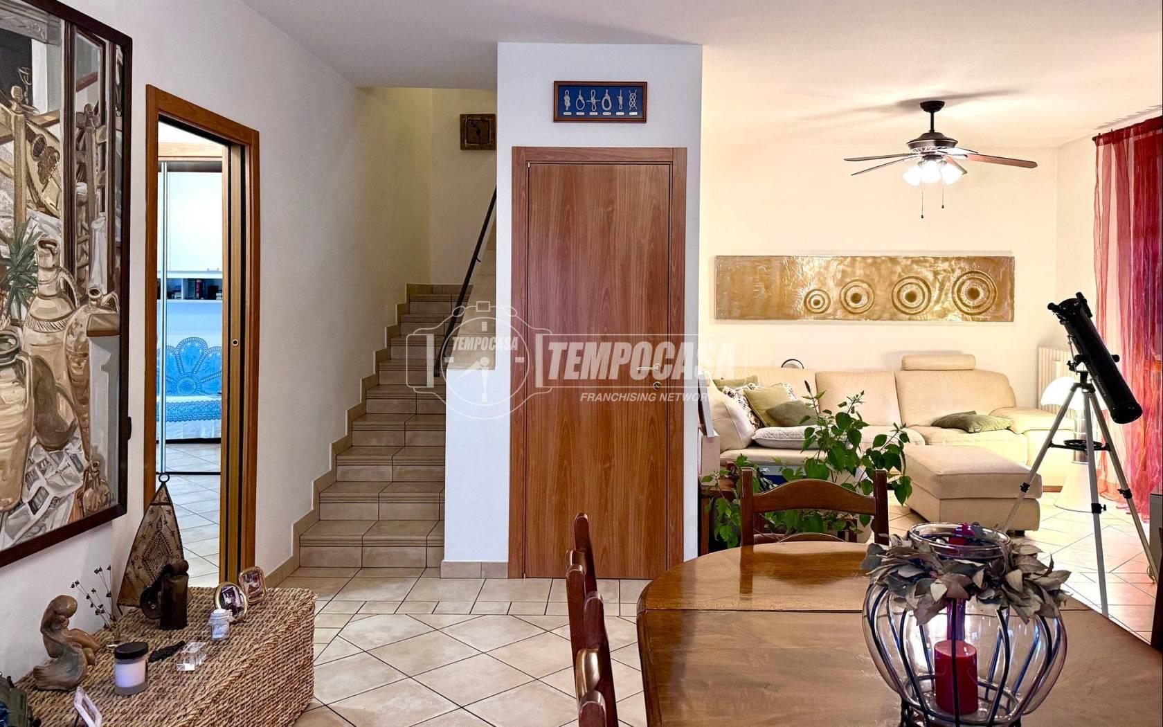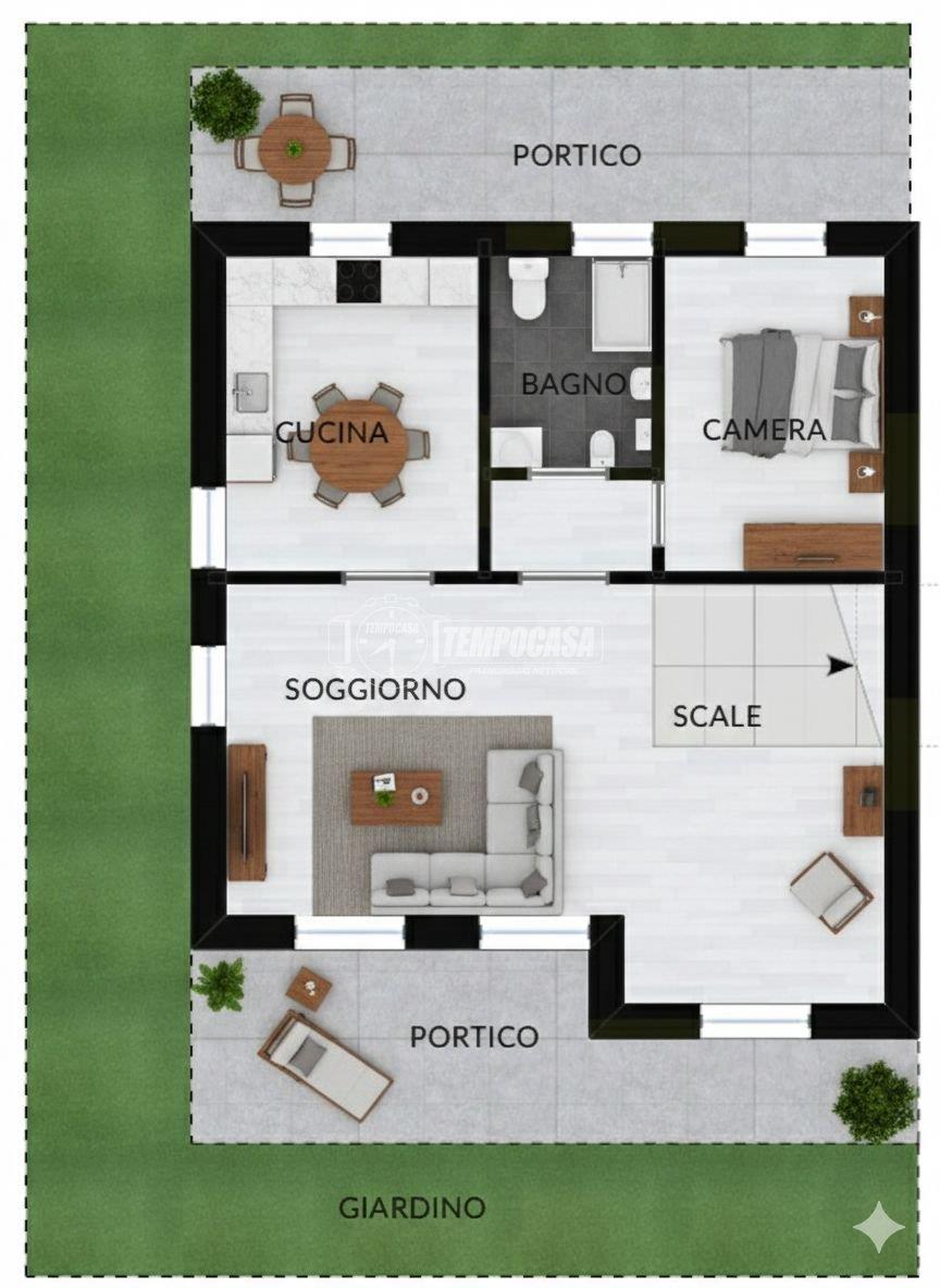 Gli interni offrono un’esperienza abitativa completa e ben distribuita. Al piano terra l’ampio soggiorno doppio, particolarmente luminoso, diventa il cuore della casa, perfetto per accogliere ospiti o per vivere momenti in famiglia in totale comfort. La cucina abitabile consente di organizzare la quotidianità con funzionalità, mentre la presenza di una camera e di un bagno sullo stesso livello aggiunge versatilità agli spazi. Tutti gli ambienti del piano terra hanno accesso diretto al giardino, creando una continuità naturale tra interno ed esterno.
